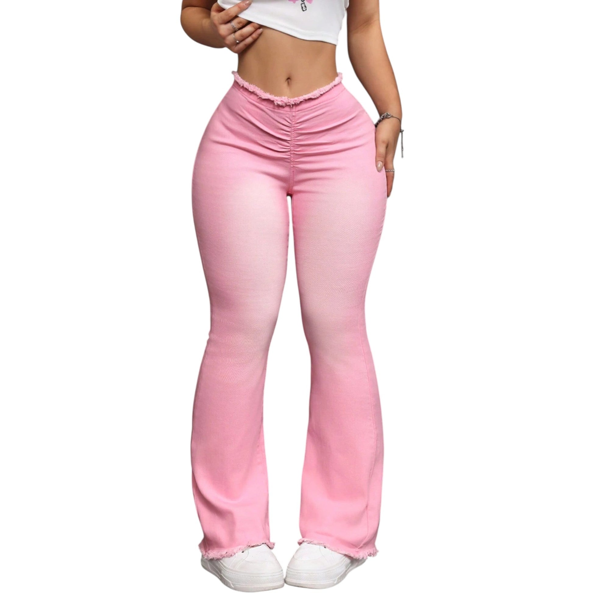 SHE rózsaszín ráncolt derekú trapézszárú farmer