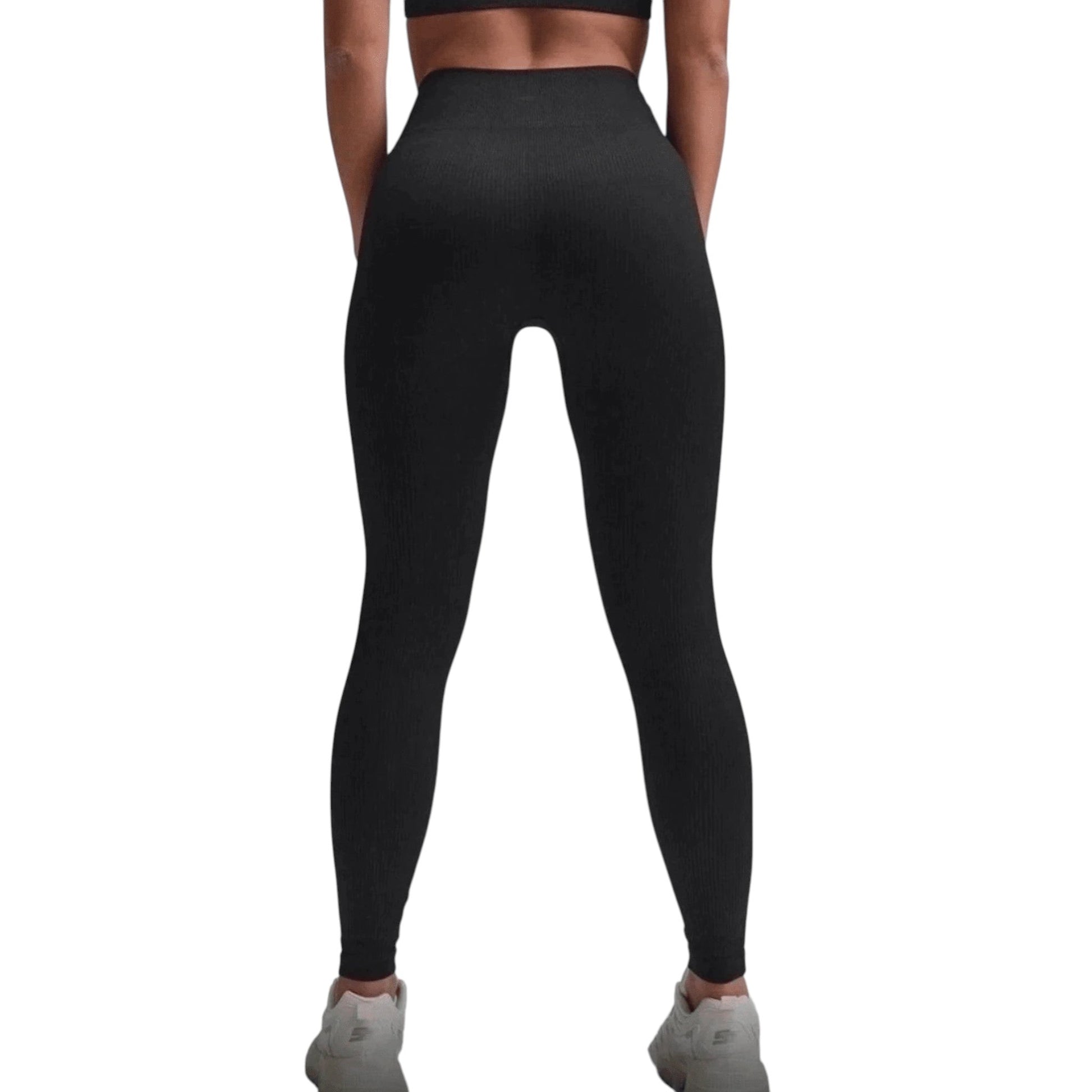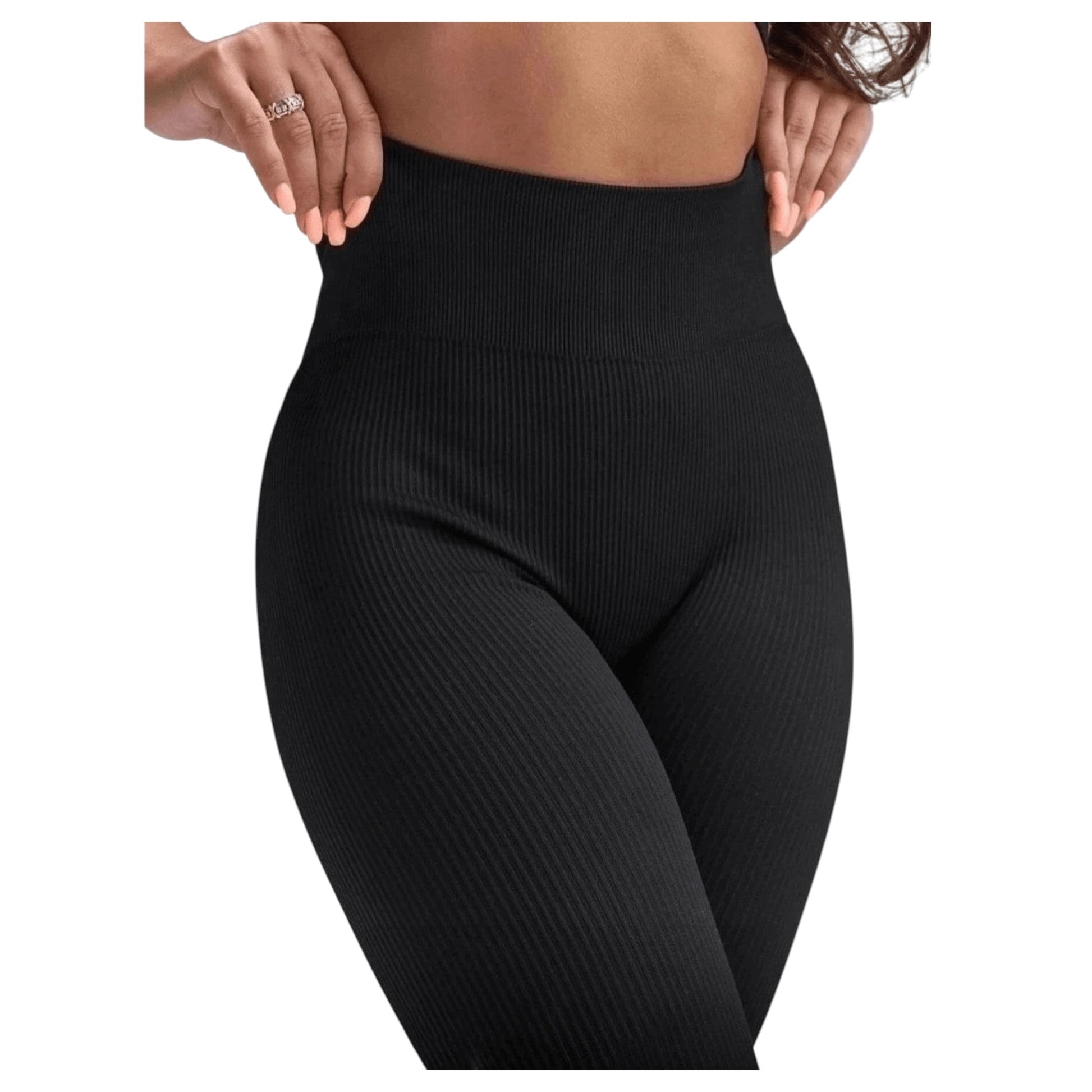Címke nélküli, fekete, magas derekú bordás anyagú leggings, varrás nélküli kivitelezéssel.