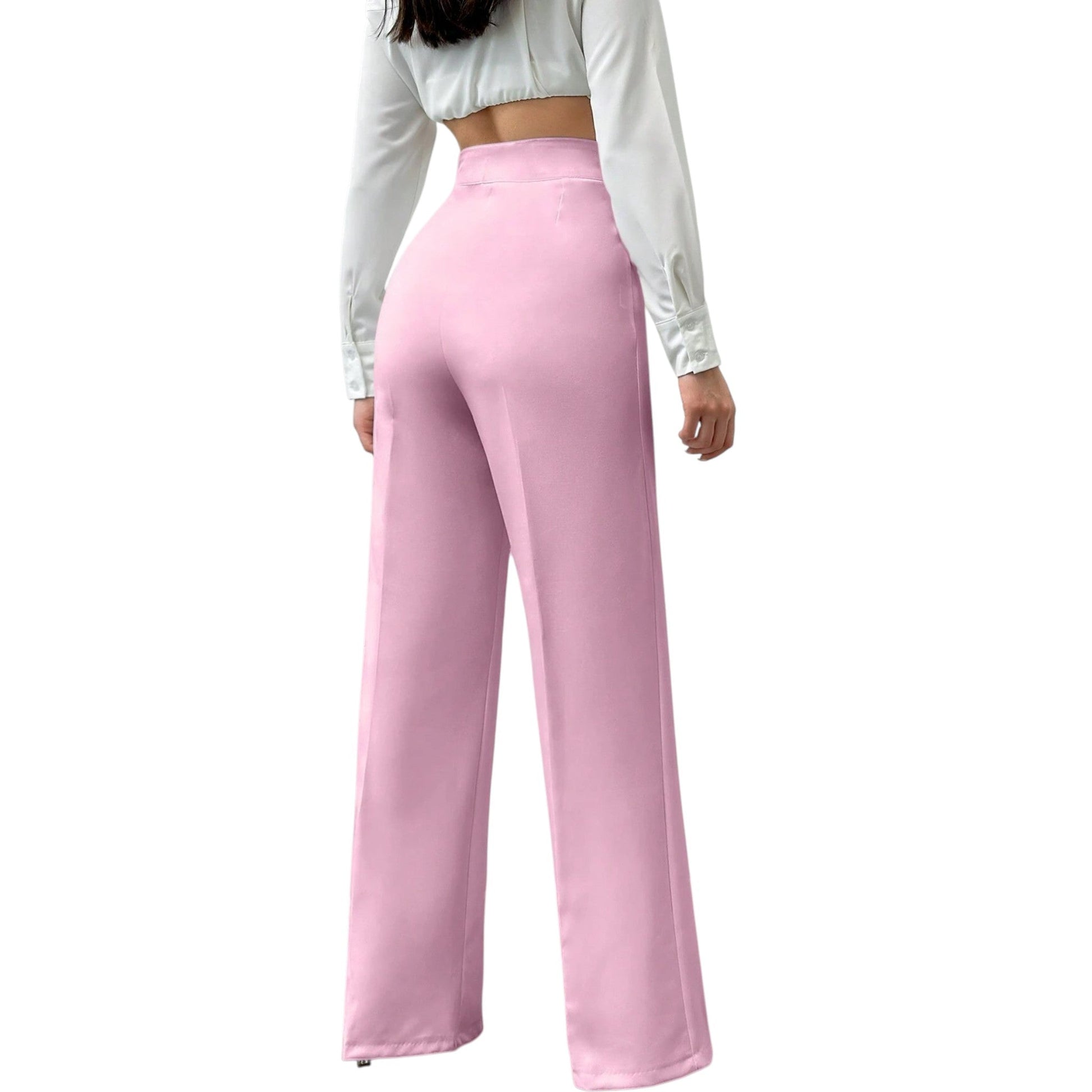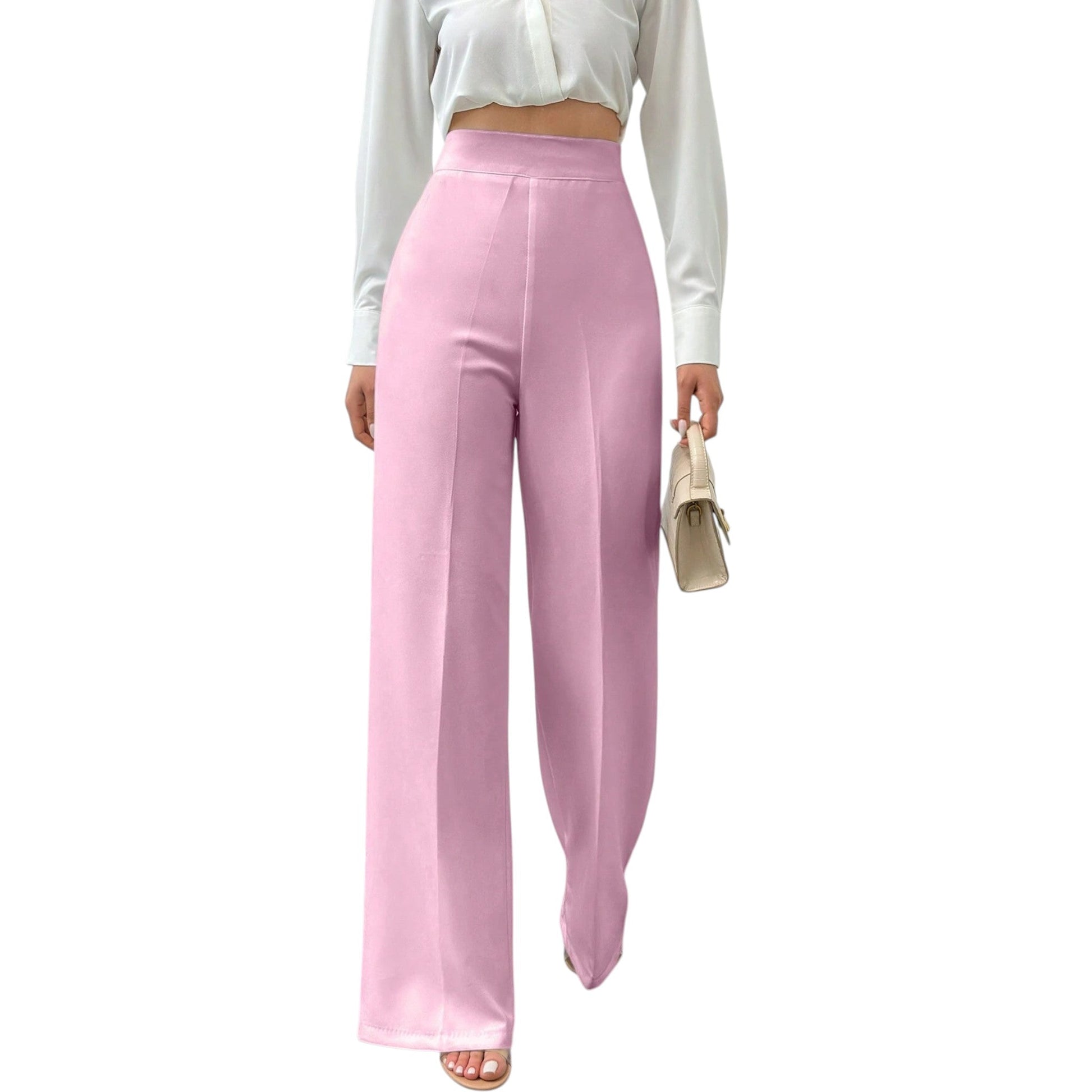 Címke nélküli, rózsaszín, magas derekú, széles szárú, ráncolt nadrág.