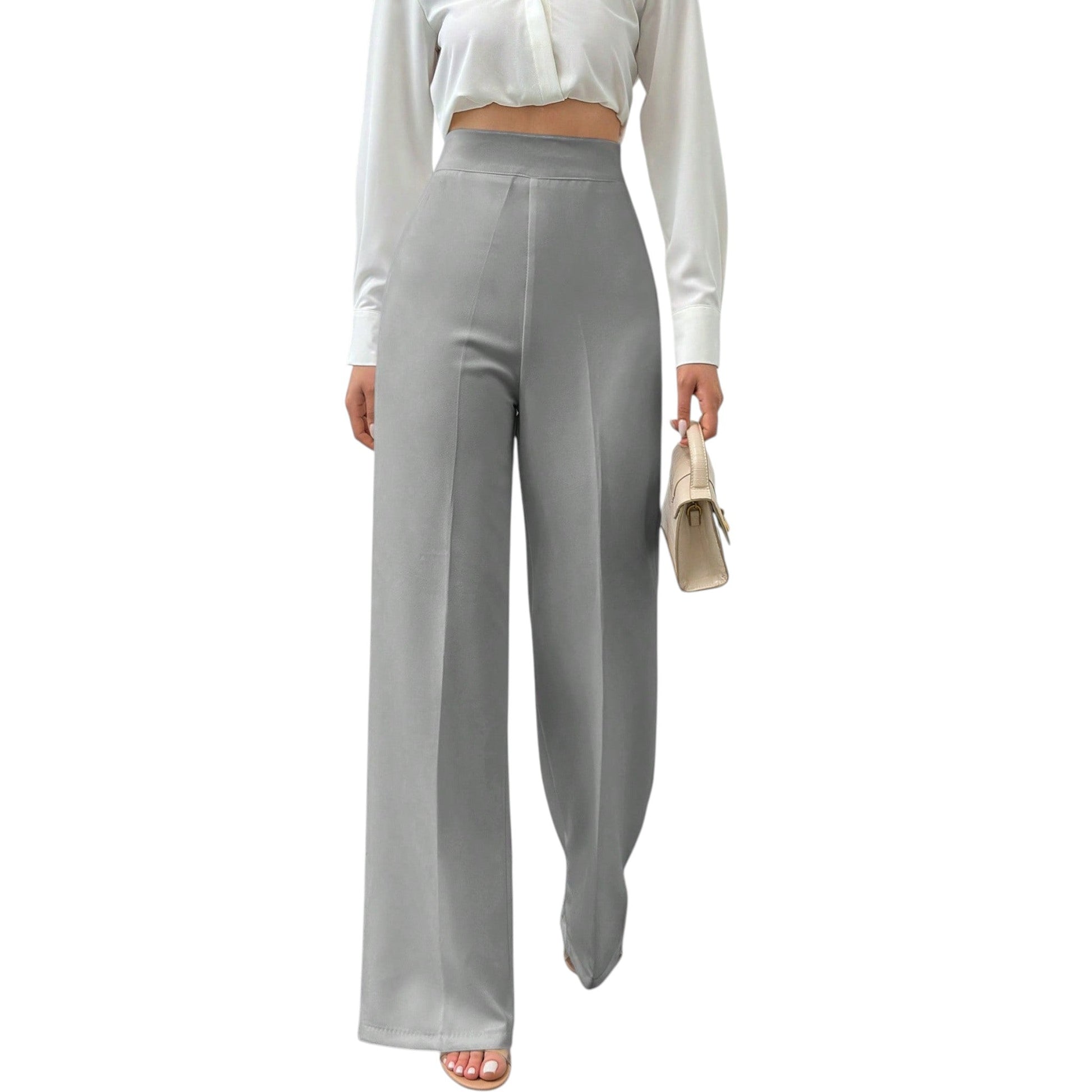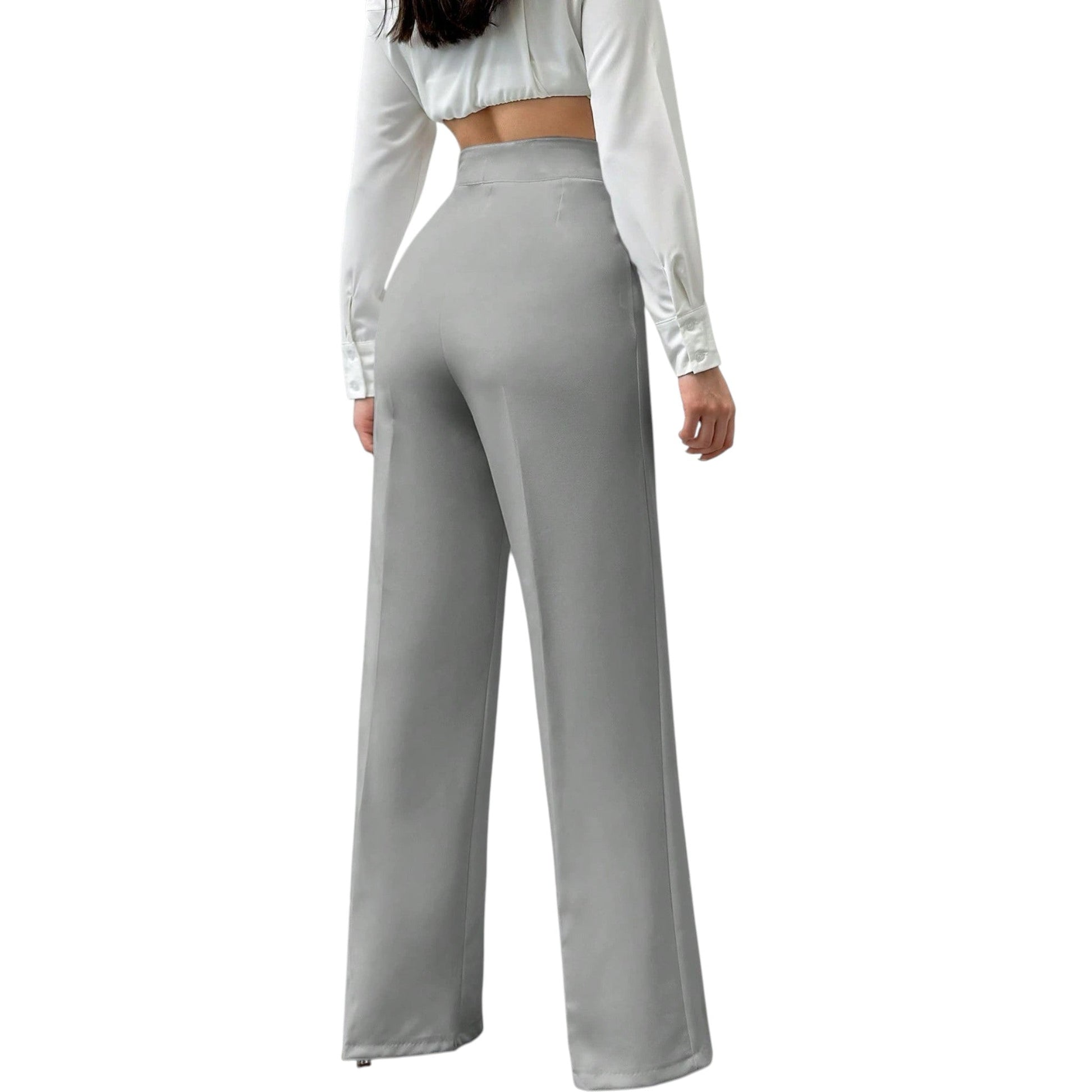Címke nélküli, szürke, magas derekú, széles szárú, ráncolt nadrág.