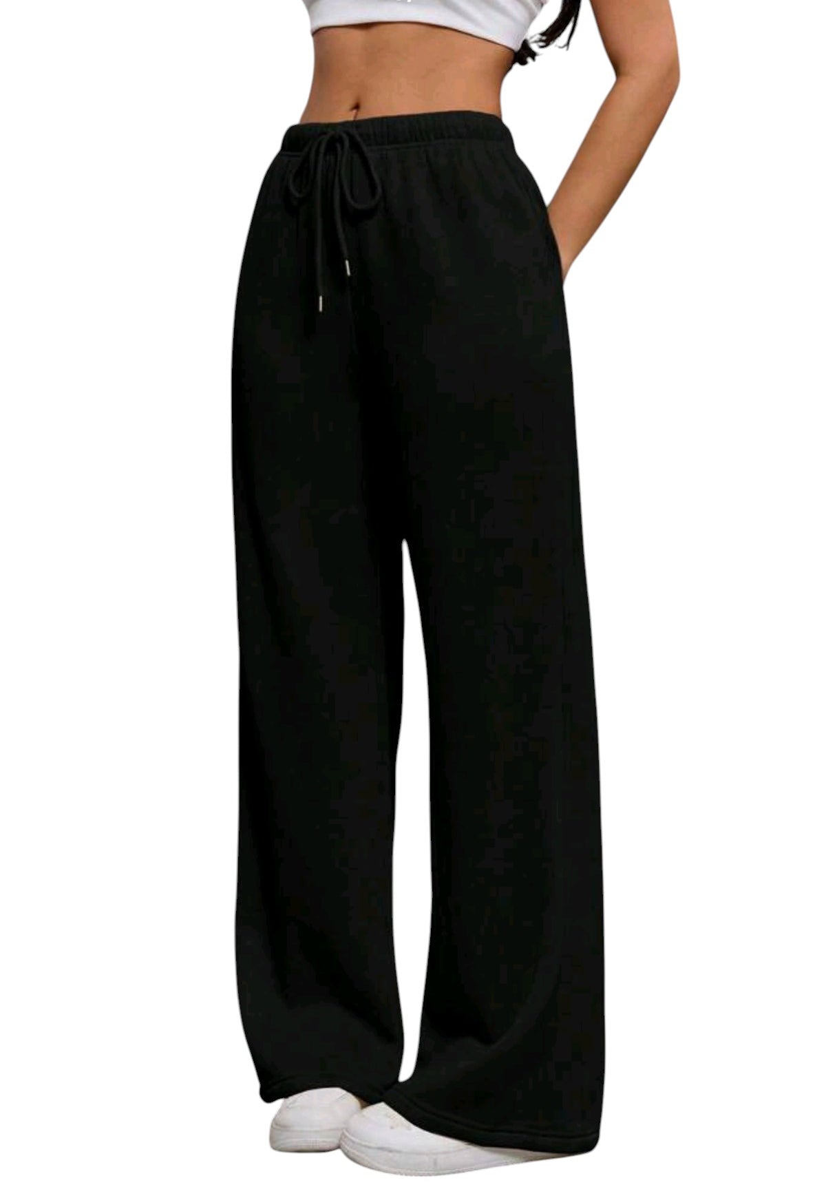 Címke nélküli, fekete, húzózsinóros derék, széles szárú, zsebesblack