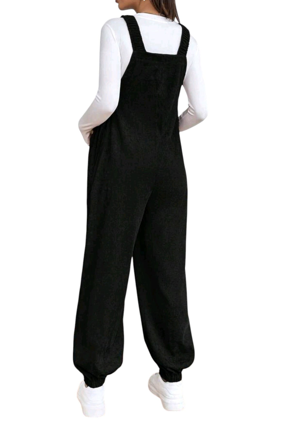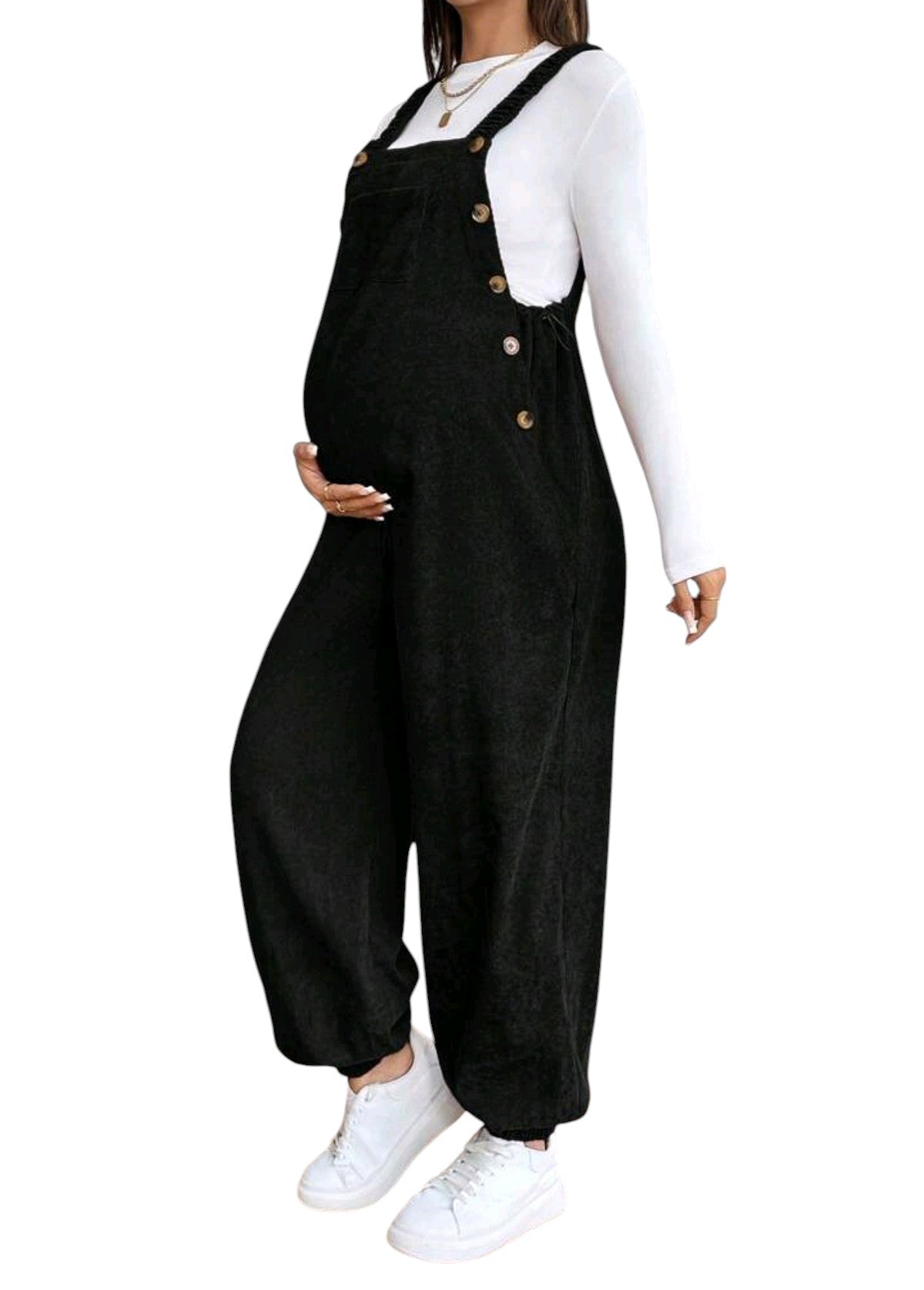 Címke nélküli, fekete, kordbársony, kismama, kantáros, széles szárú, gombos oldal, zsebes