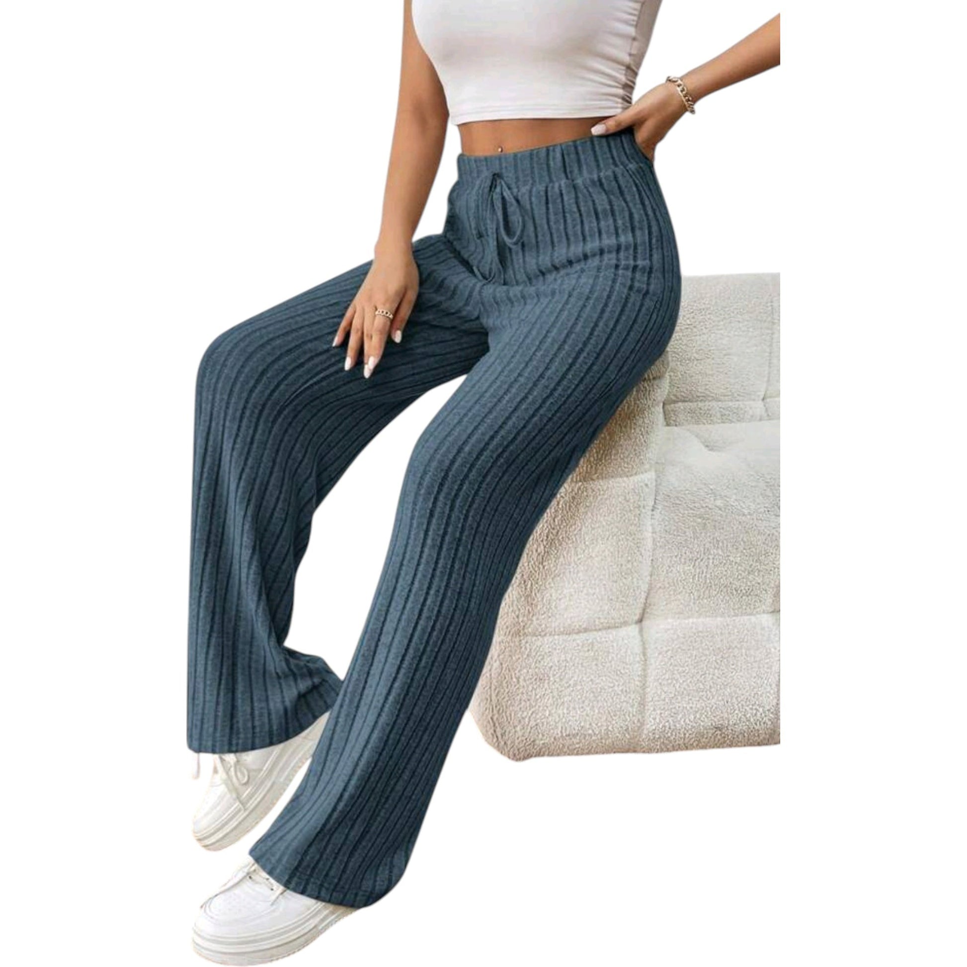 Címke nélküli, szürke, bordázott, wide leg, kötött, húzózsinóros