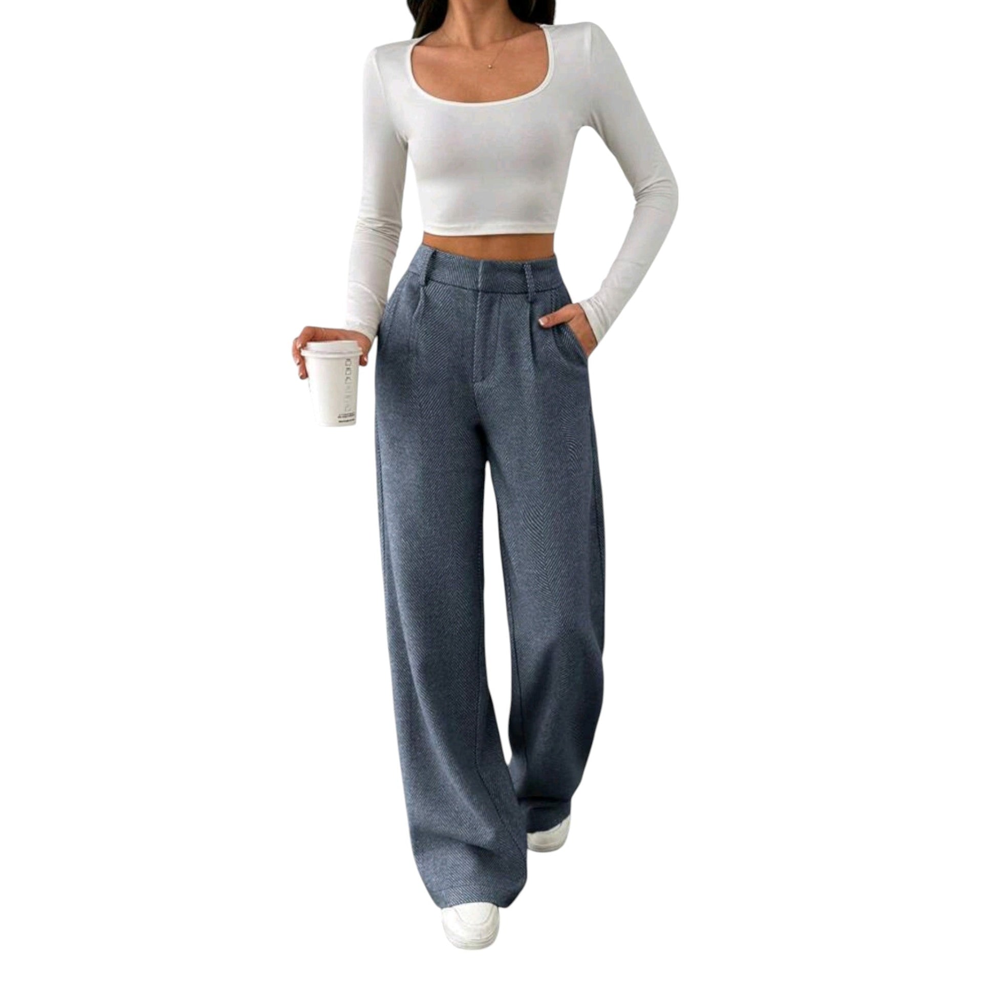 Címke nélküli, szürke, magas derekú, zsebekkel.
