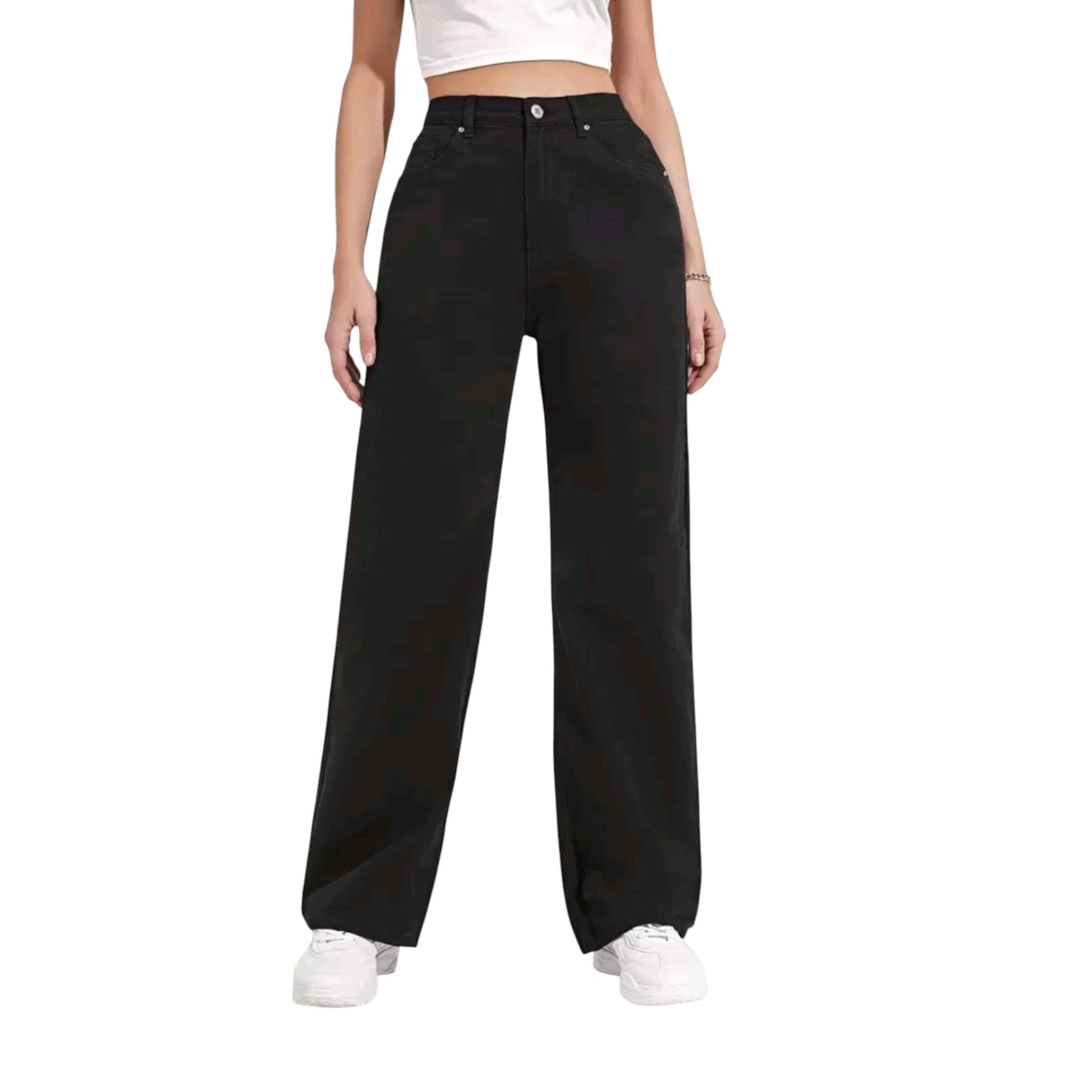 SHE fekete magas derekú egyenes szárú farmer
