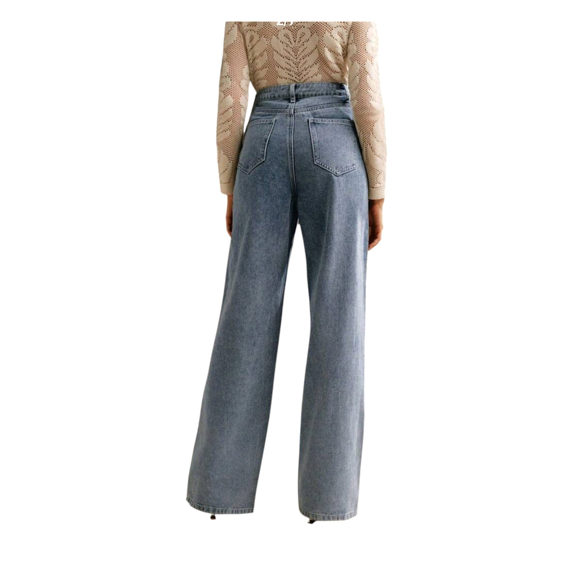 SHE kék gyöngyös magas derekú egyenes szárú farmer