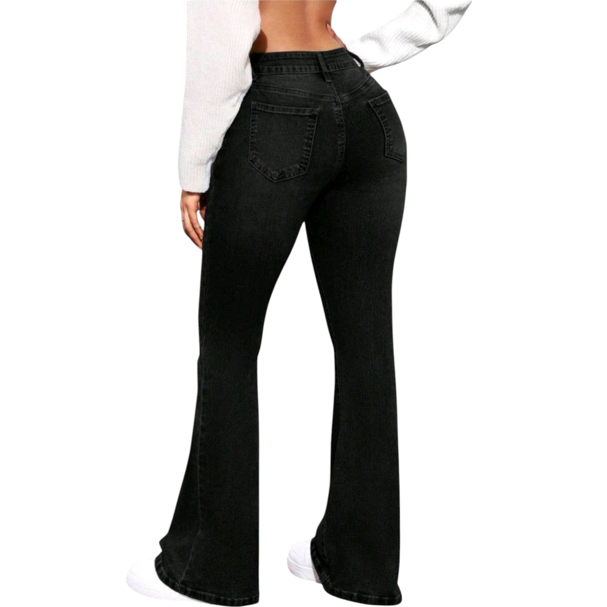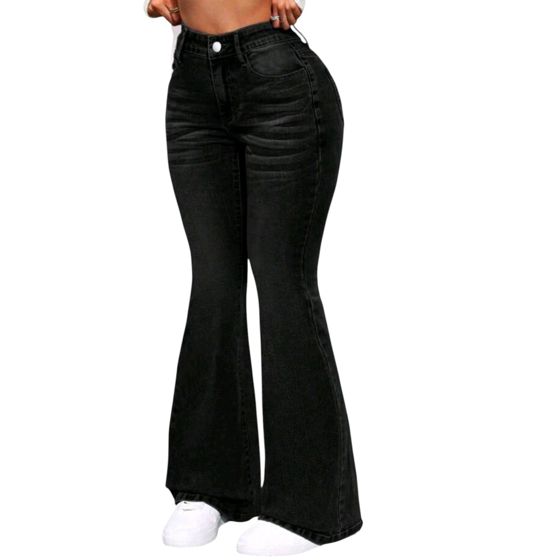Címke nélküli, fekete, magas derekú, flared szárú, farmer anyagú.