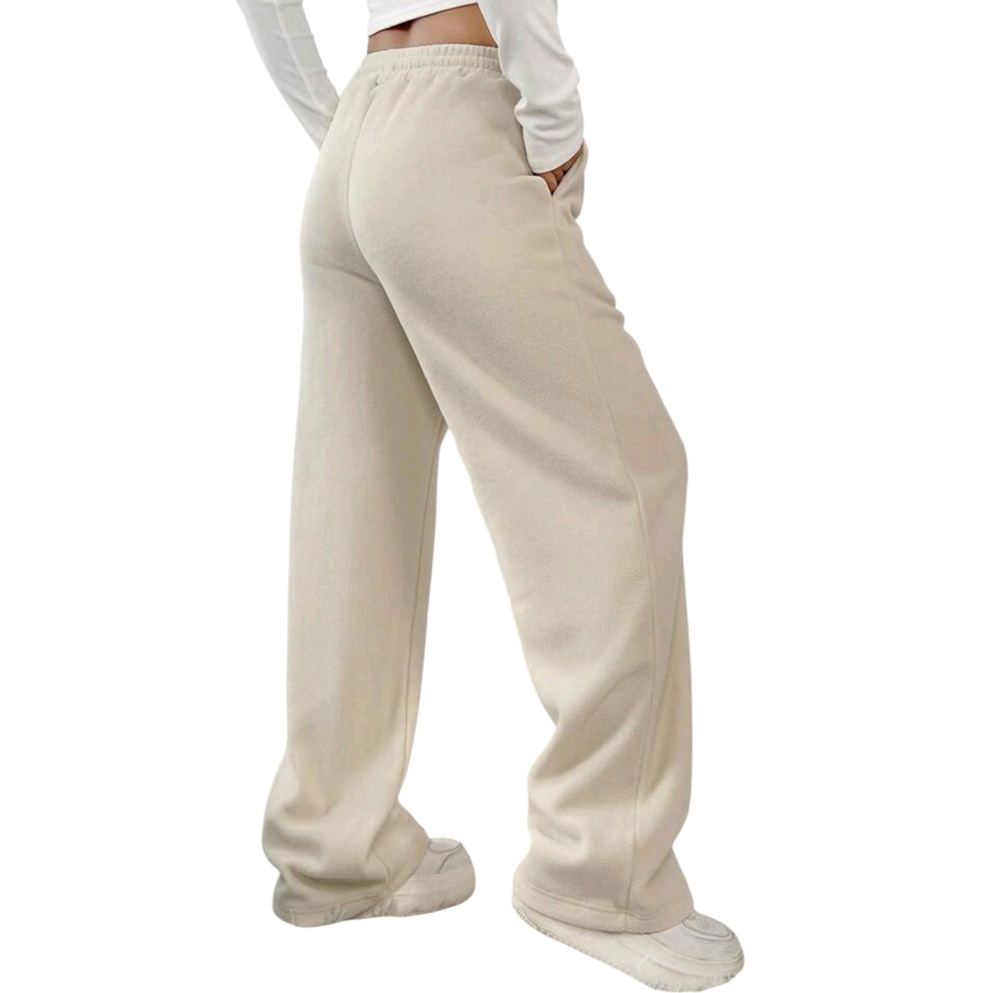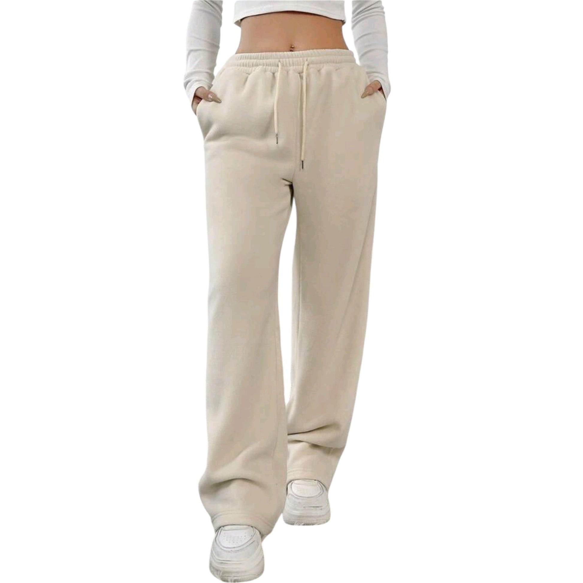 Címke nélküli, bézs, magas derekú, megköthető derekú, zsebes, wide leg szabású melegítő nadrág.