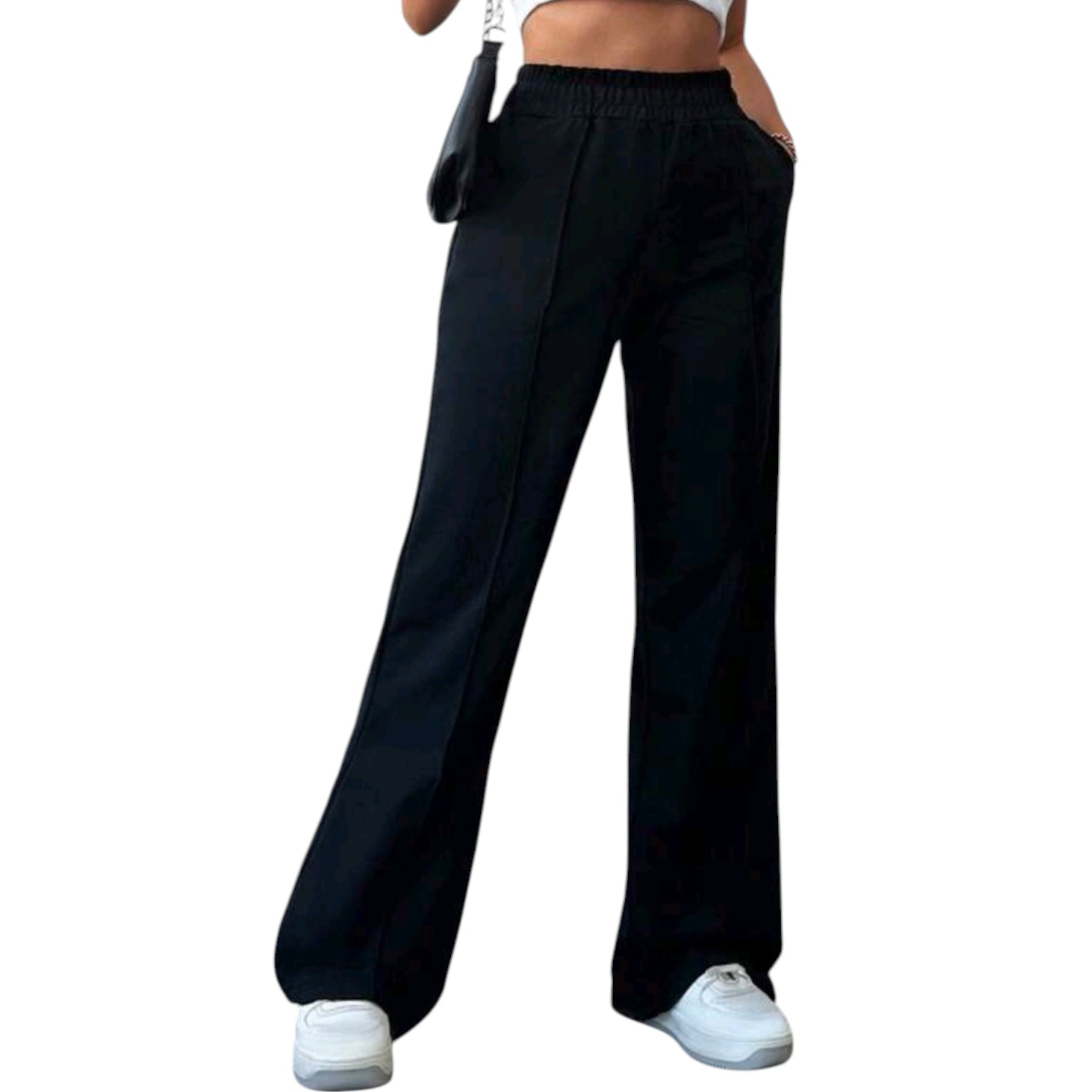 Címke nélküli, fekete, bő szárú, gumis derék, elegáns, elöl varrás díszítéssel