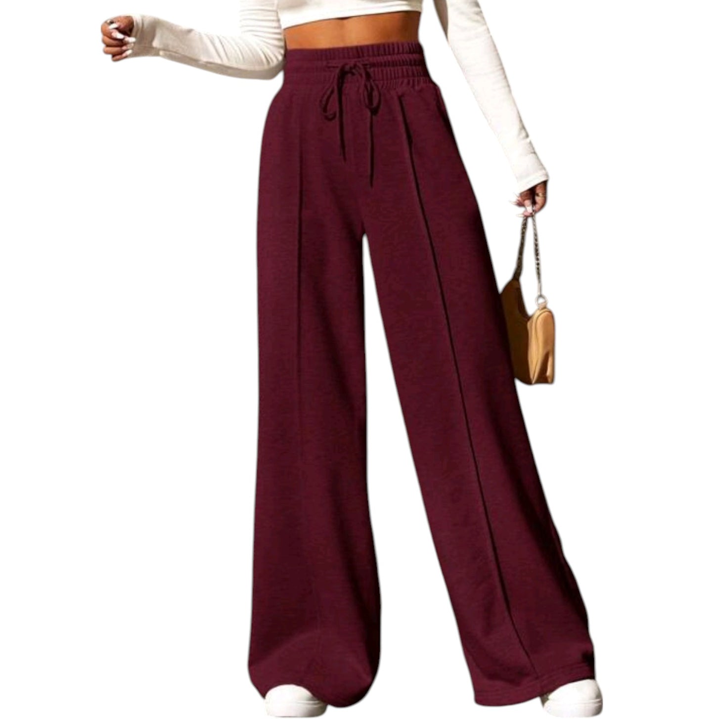 Címke nélküli, bordó, magas derekú, gumis derekú, húzózsinóros, széles szárú melegítő nadrág.