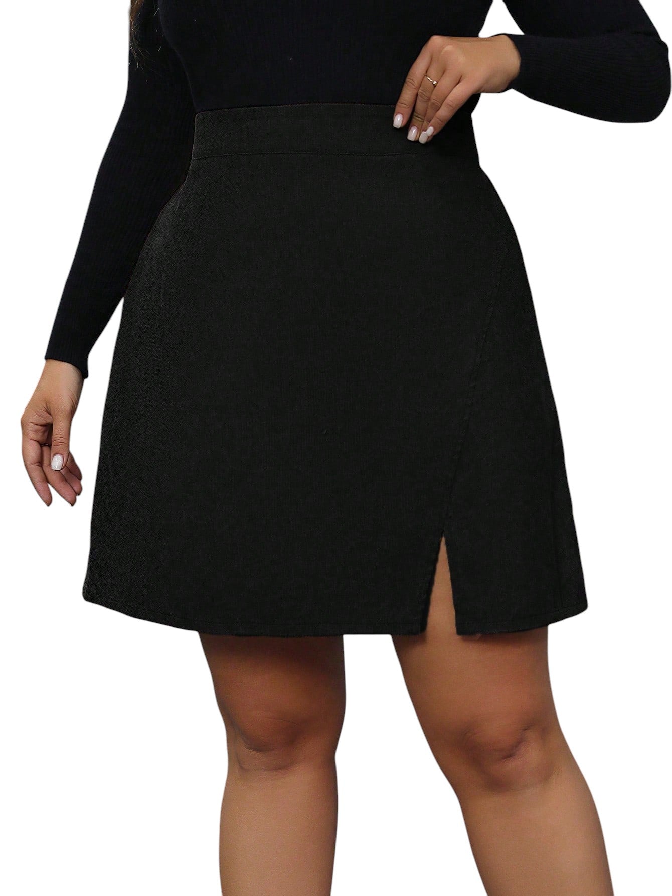 Címke nélküli, fekete, magas derekú, A-vonalú szoknya elöl slicceléssel