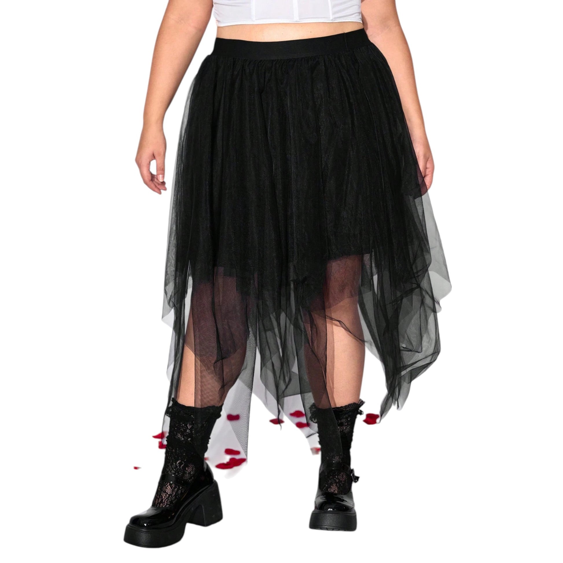 Címke nélküli, fekete, aszimmetrikus szegélyű, tüll anyagú.