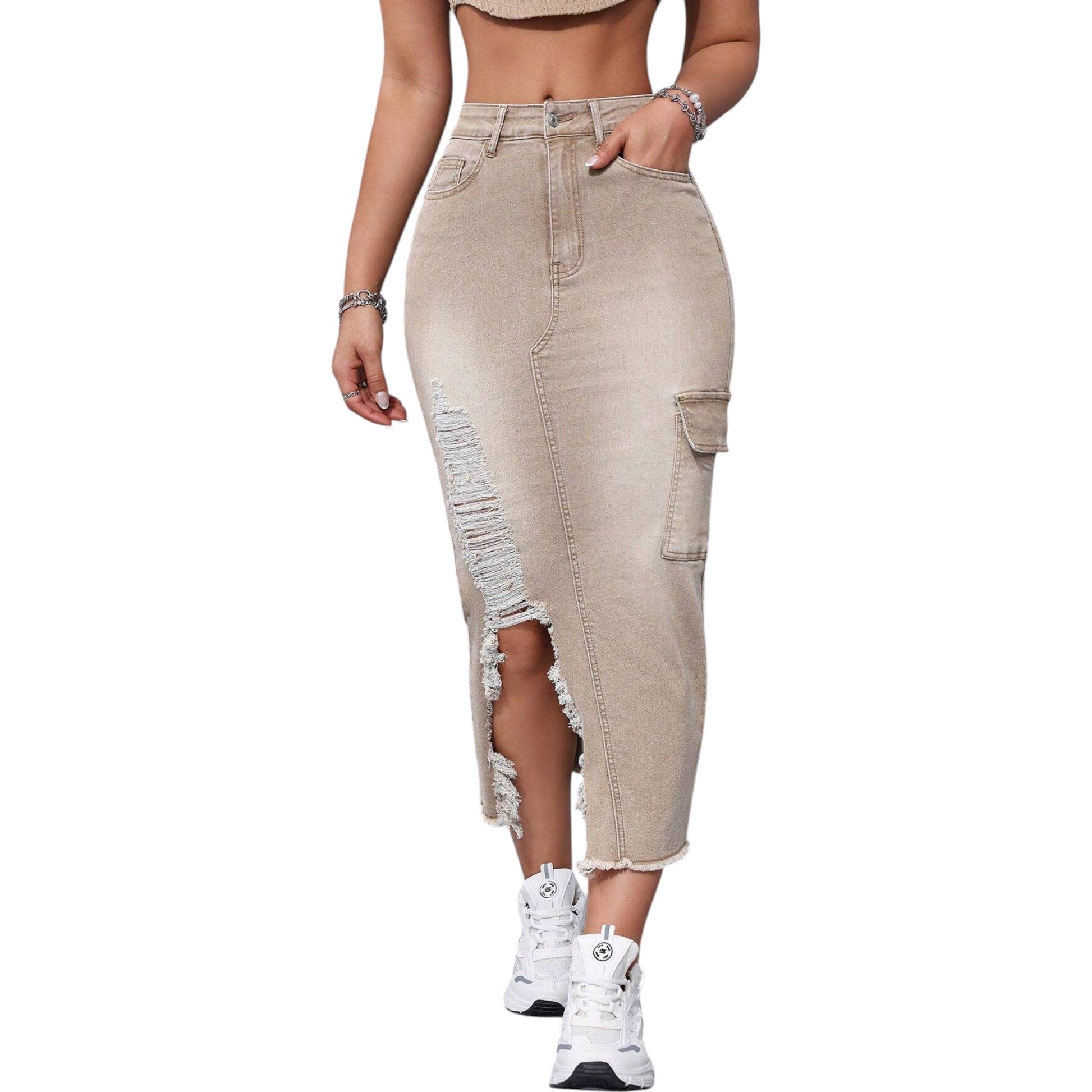 SHE bézs szaggatott farmer szoknya