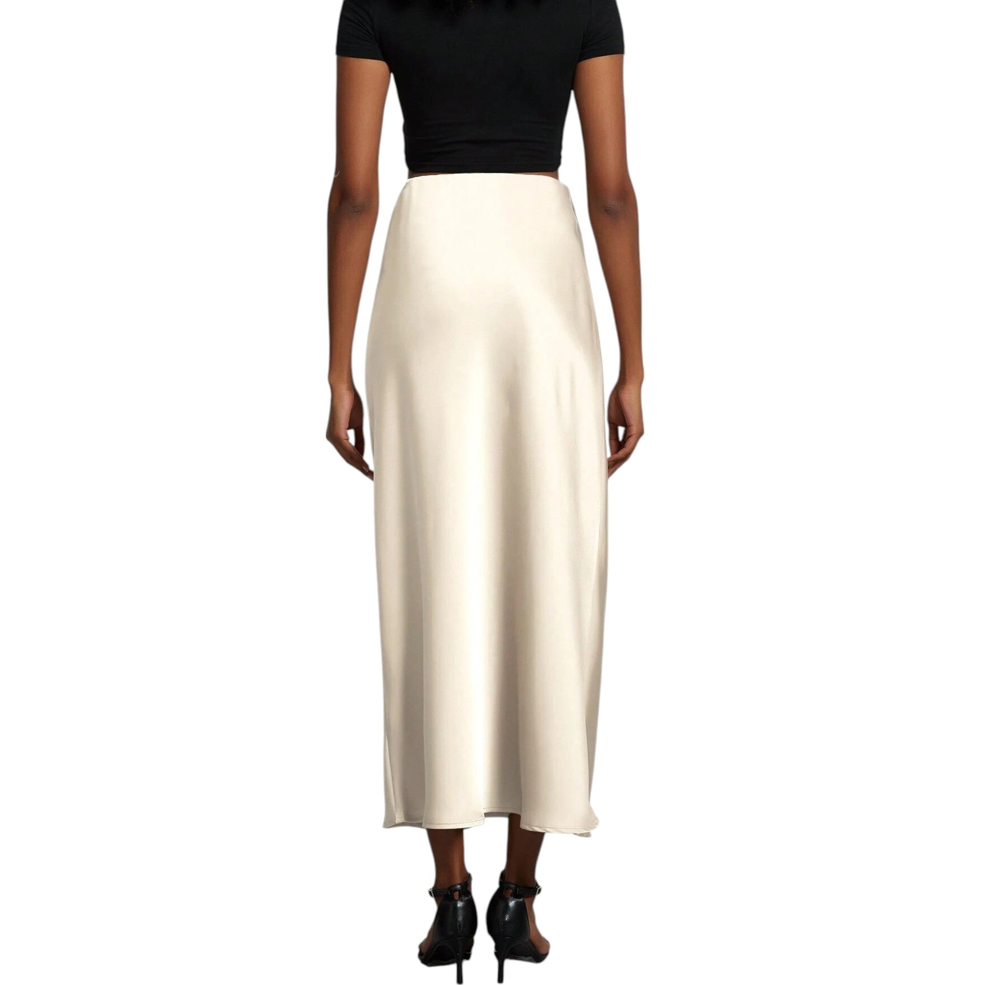SHE bézs szatén maxi szoknya