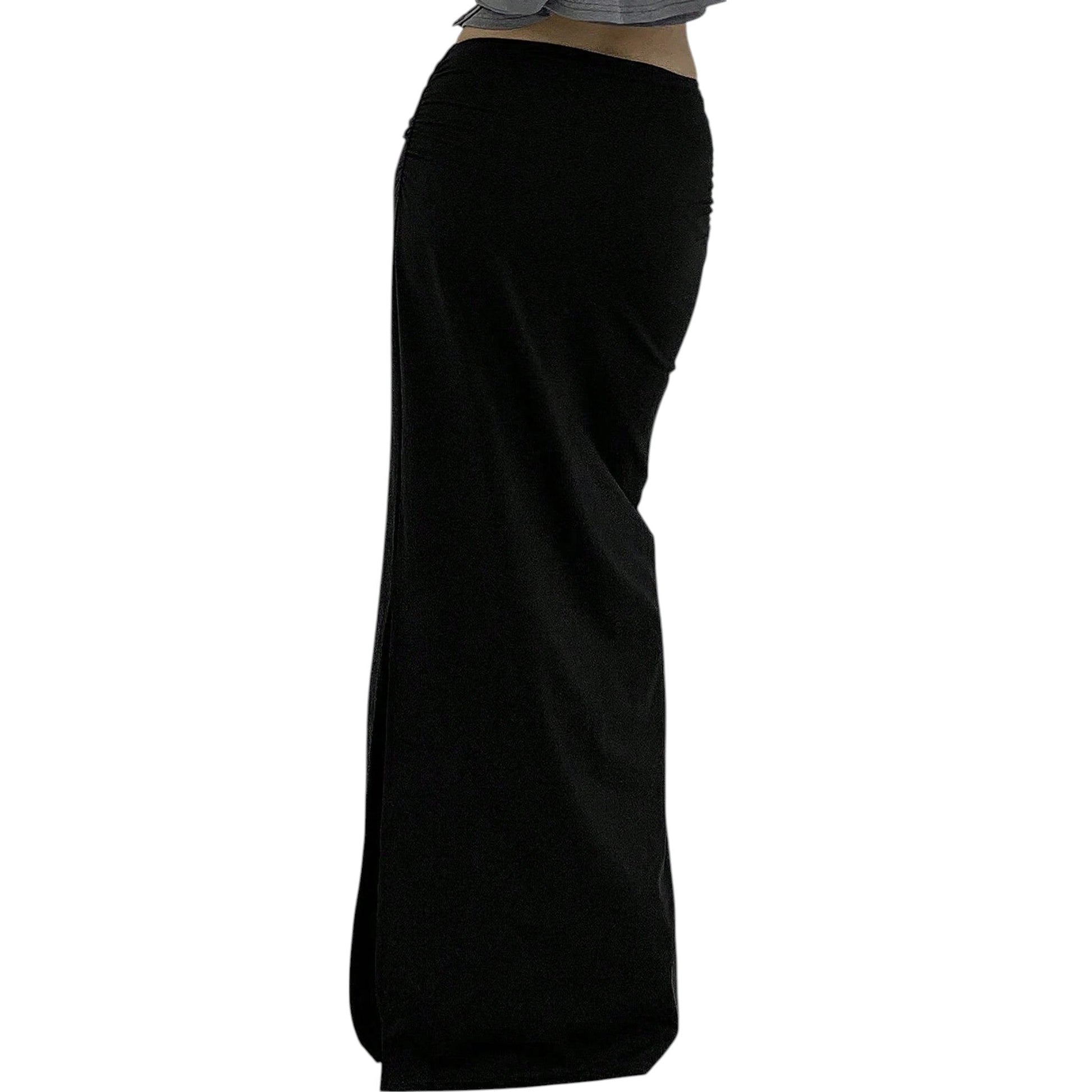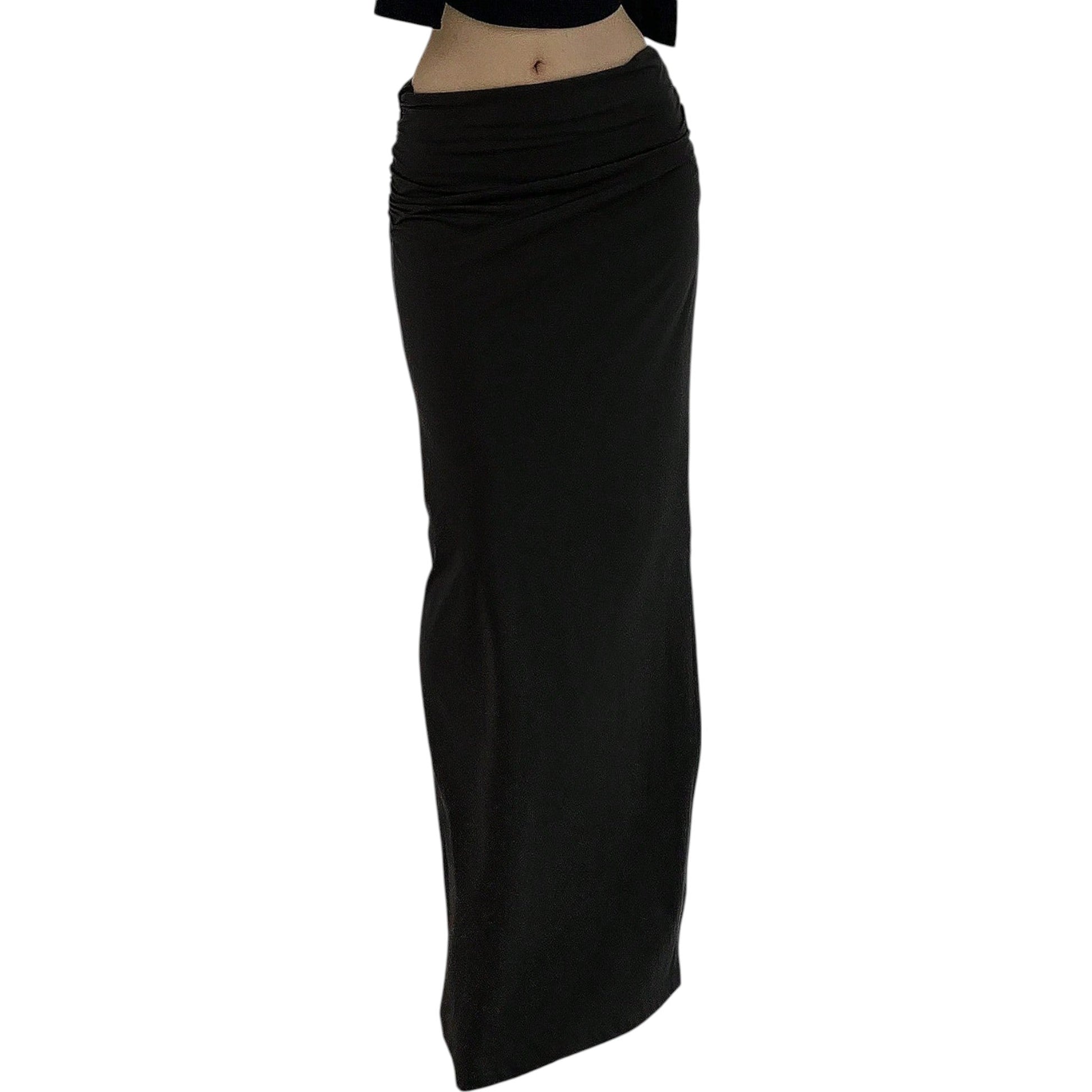 Címke nélküli, fekete, hosszú fazon, testhezálló, derékrészen redőzött rész.