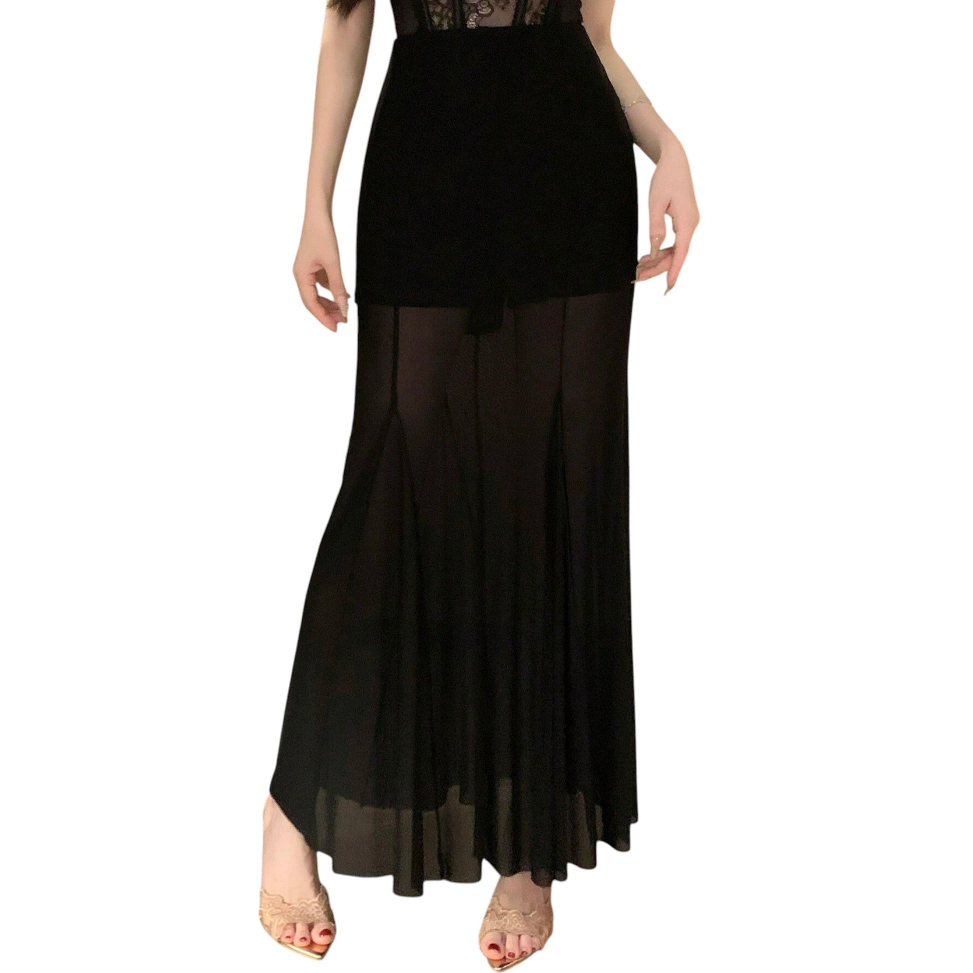 Címke nélküli, fekete, áttetsző, maxi szoknya.