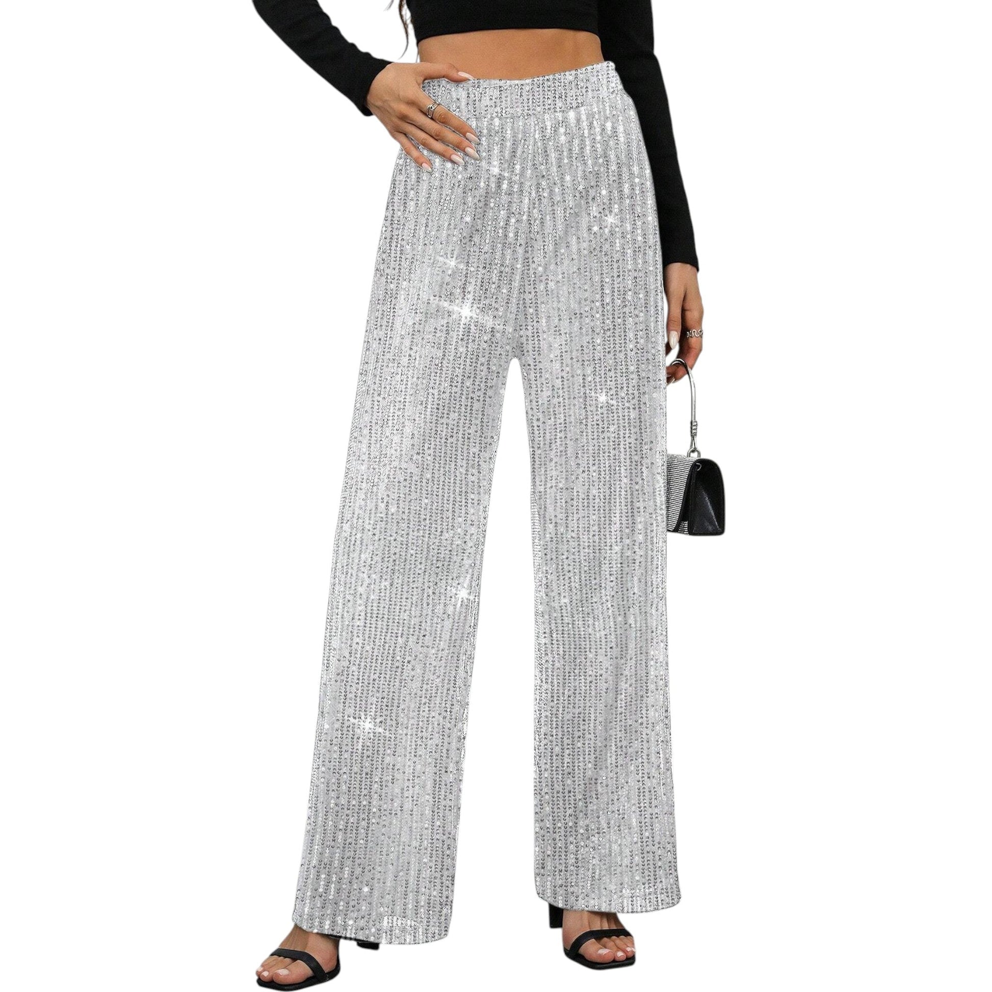 SHE ezüst flitteres bő szárú nadrág