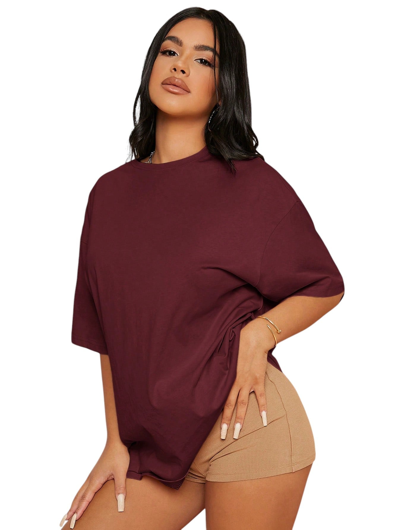 Címke nélküli, bordó, kerek nyakú, rövid ujjú póló
