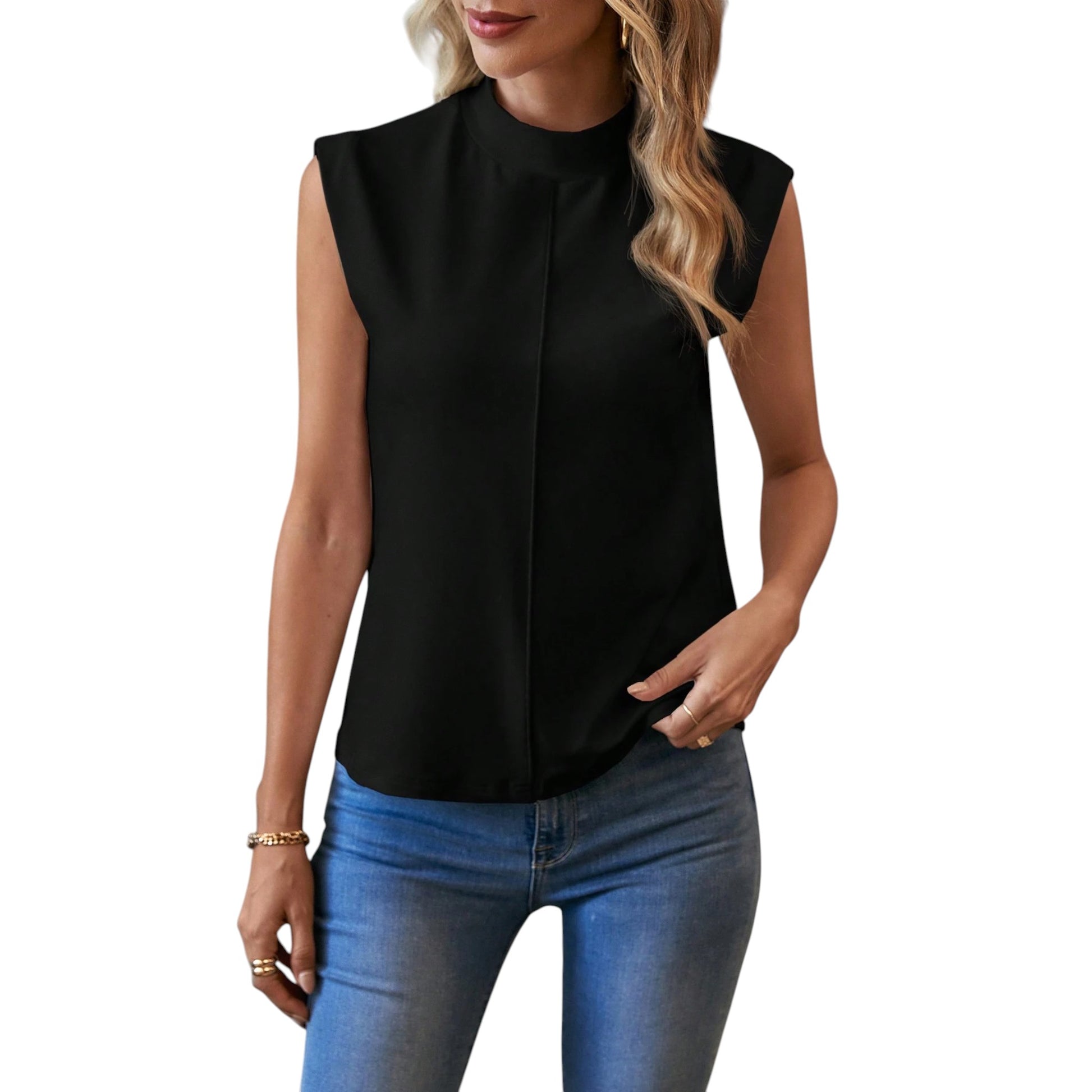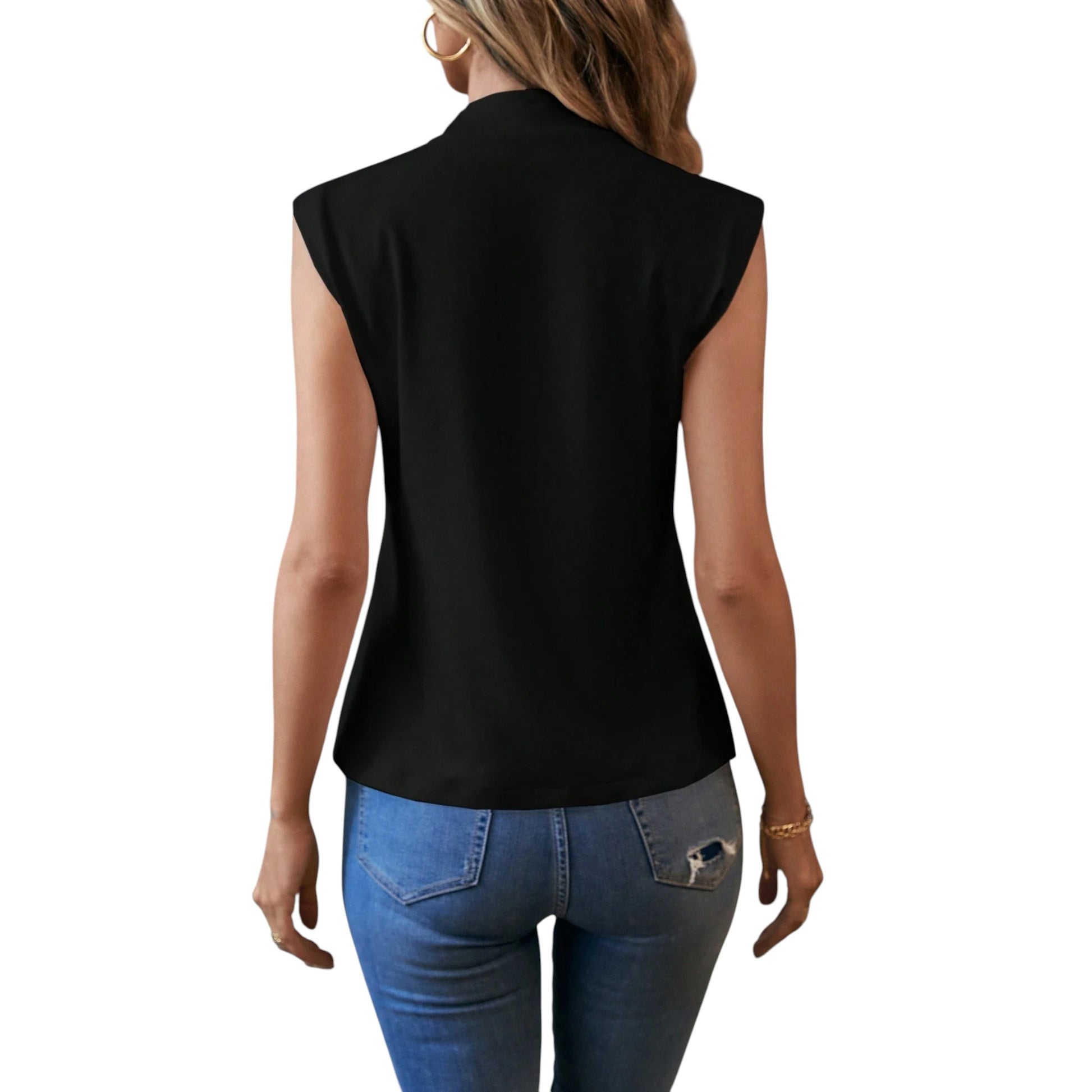 Címke nélküli, fekete, ujjatlan, garbószerű nyakú felső.