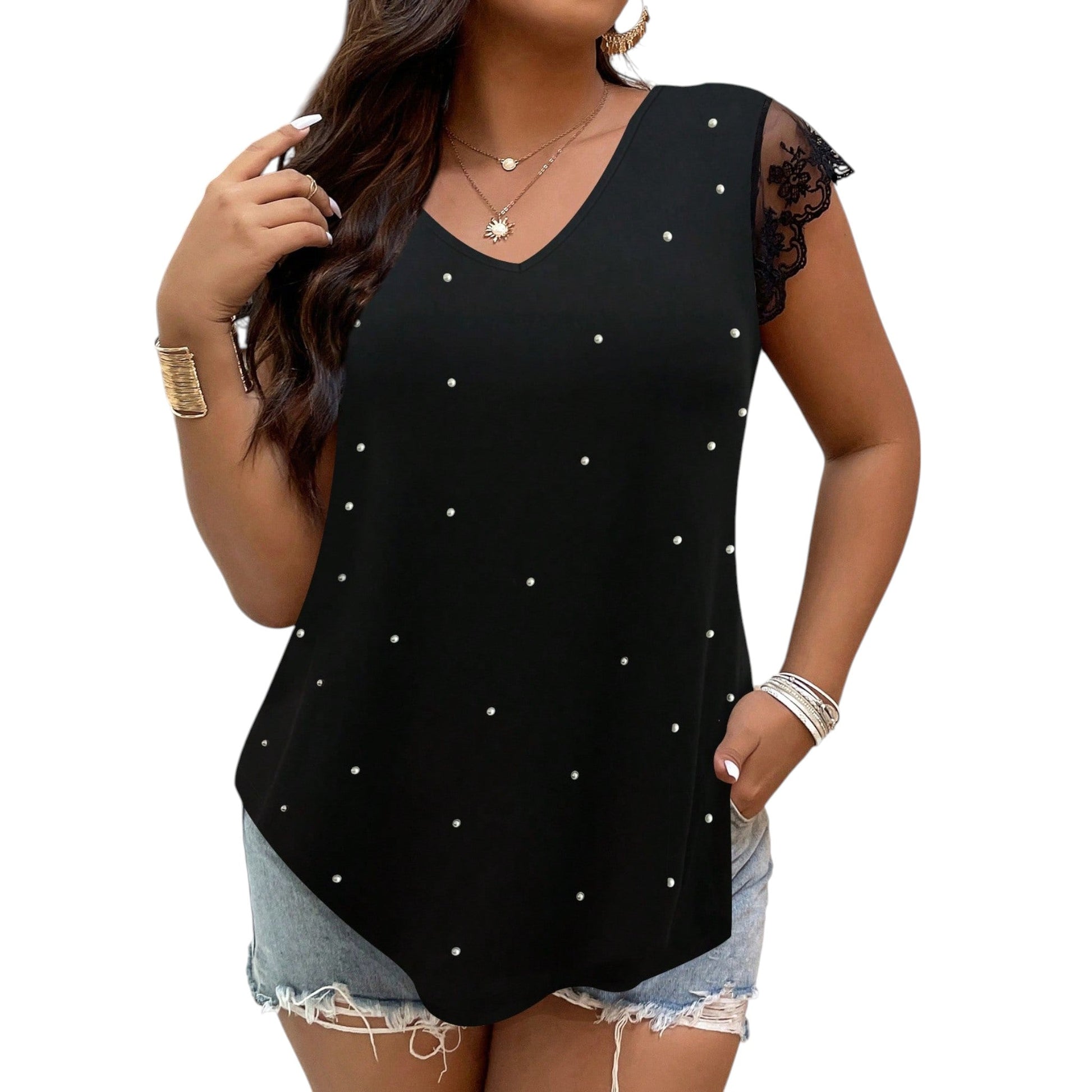 Címke nélküli, fekete, V-nyakú, rövid ujjú, áttetsző csipke ujjakkal, gyöngyös díszítéssel az elején, aszimmetrikus aljjal.