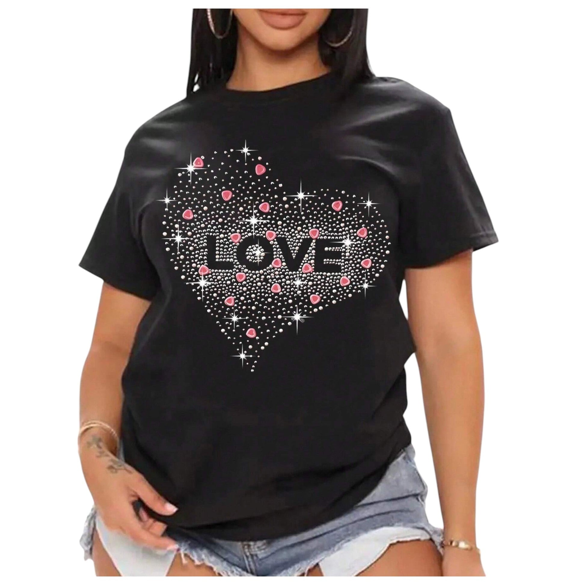 Címke nélküli, fekete, rövid ujjú, kerek nyakú, elől strasszos szív mintával és "LOVE" felirattal.