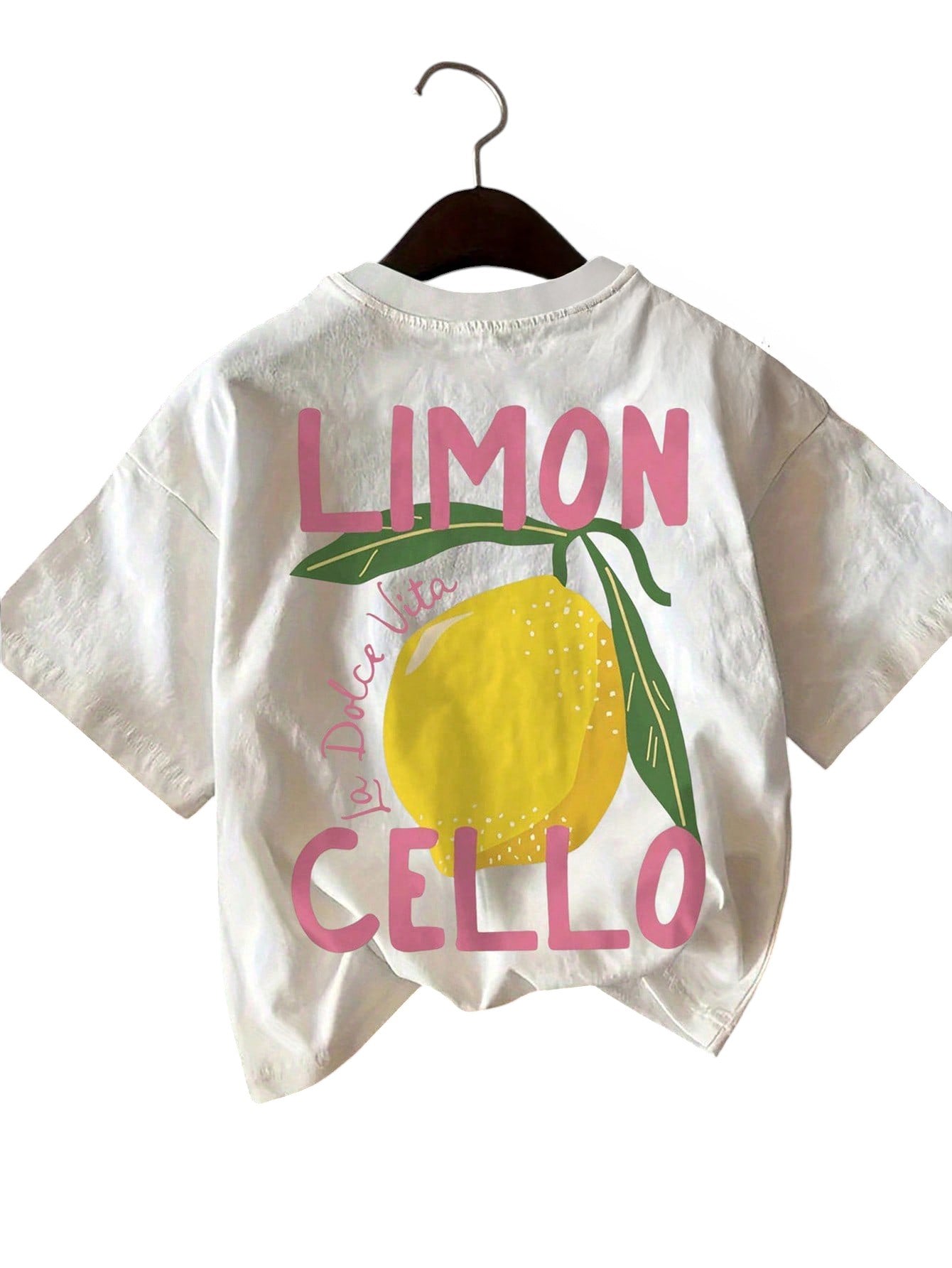 Címke nélküli, fehér, rövid ujjú póló, citrom mintával és "LIMONCELLO" felirattal.
