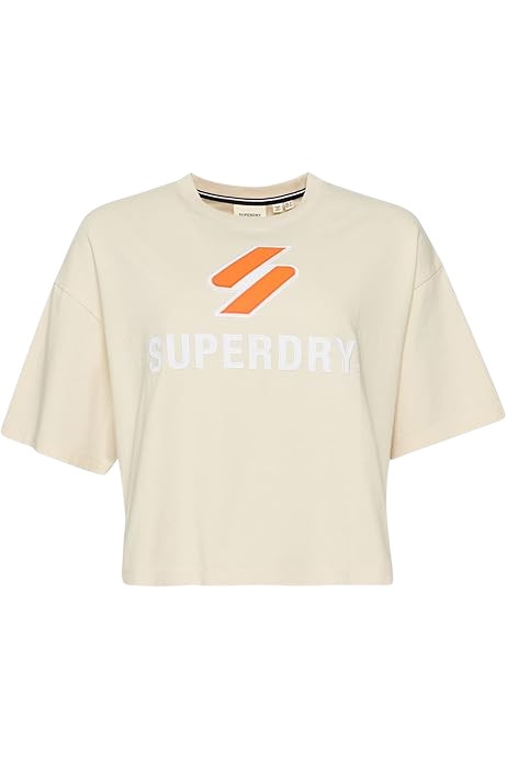 Címke nélküli, krém/bézs, pamut, laza/crop fazon, kerek nyakkivágás, rövid (bő) ujj, logó nyomat.