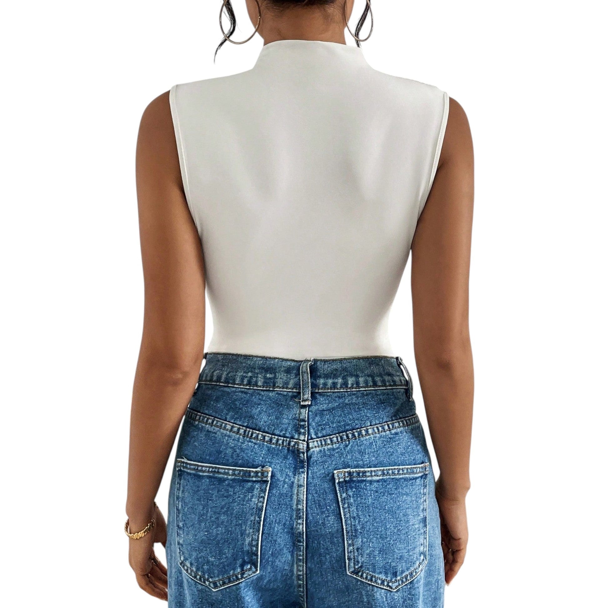 SHE fehér magas nyakú ujjatlan body