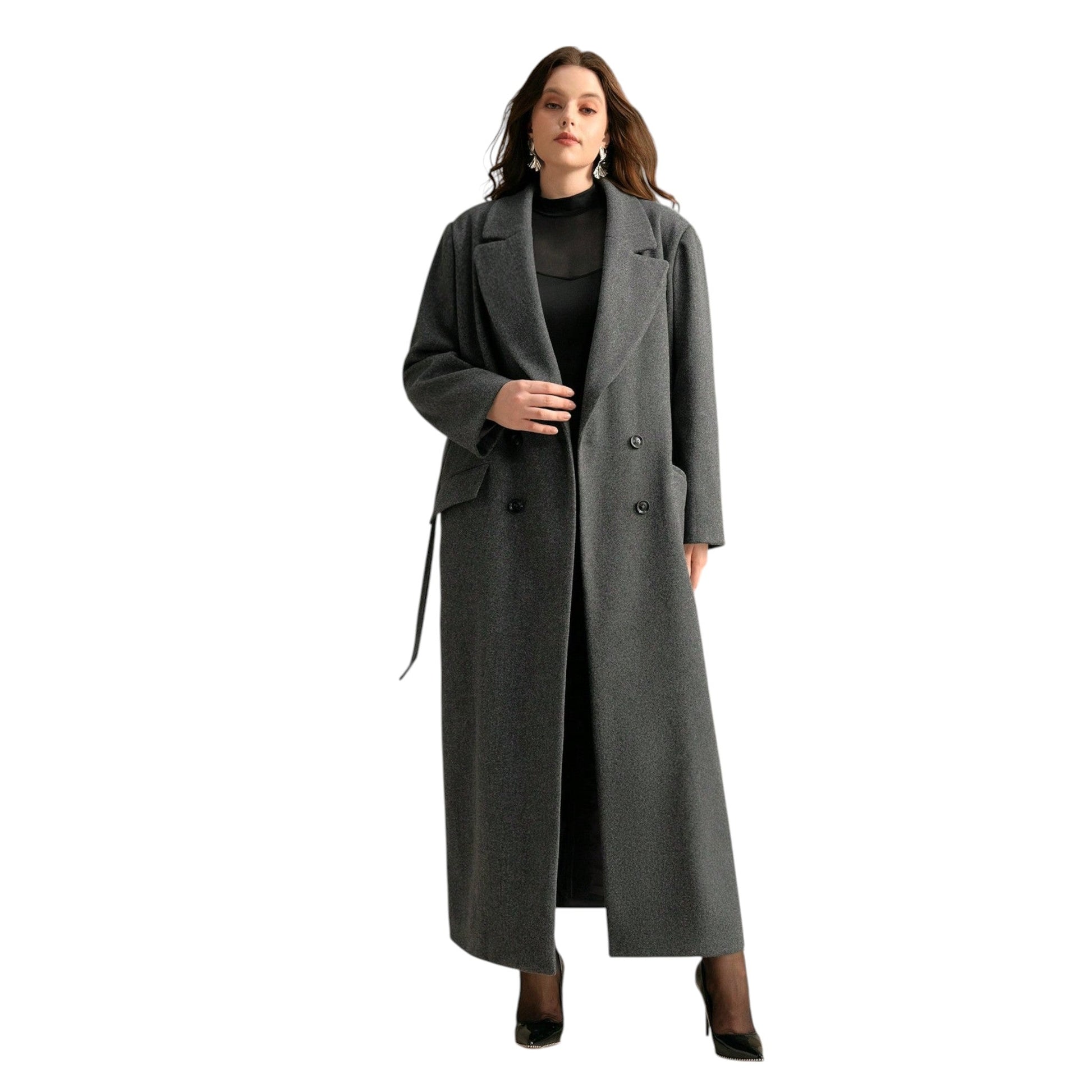 Címke nélküli, szürke, hosszú, gyapjú anyagú, dupla gombsoros.