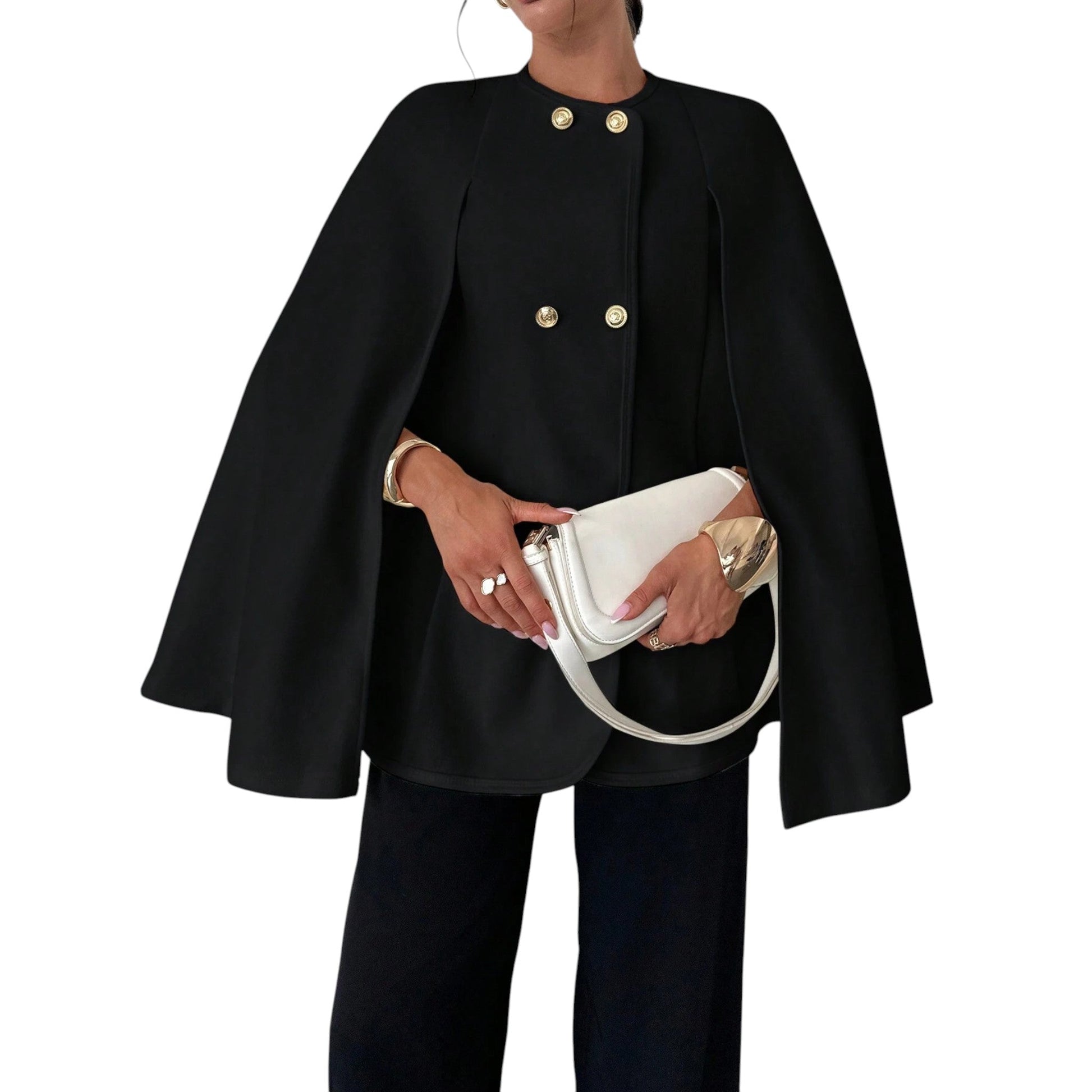 Címke nélküli, fekete, ujjatlan, arany gombokkal, cape fazon.