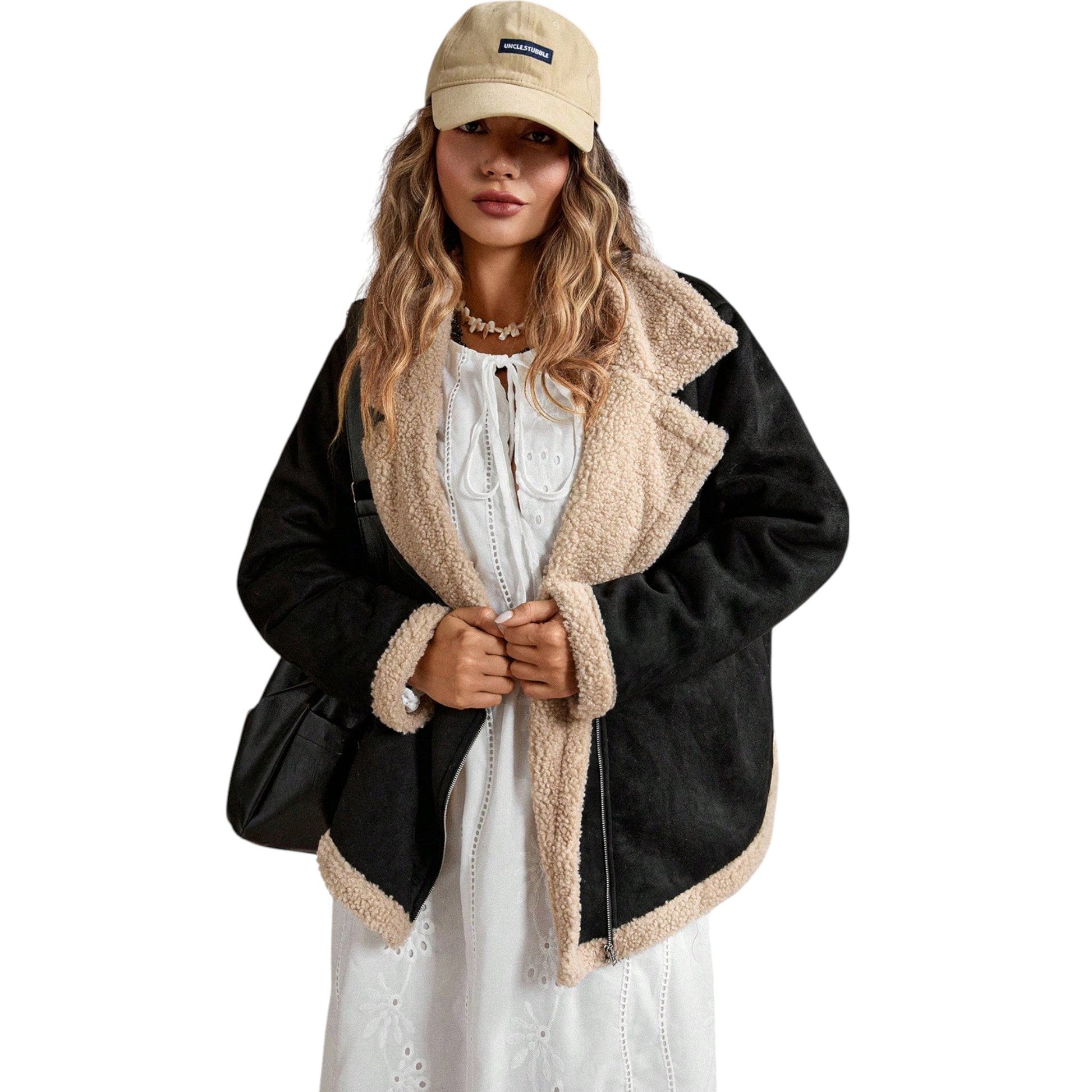 Címke nélküli, fekete, hosszú ujjú, bélelt, cipzáros dzseki.