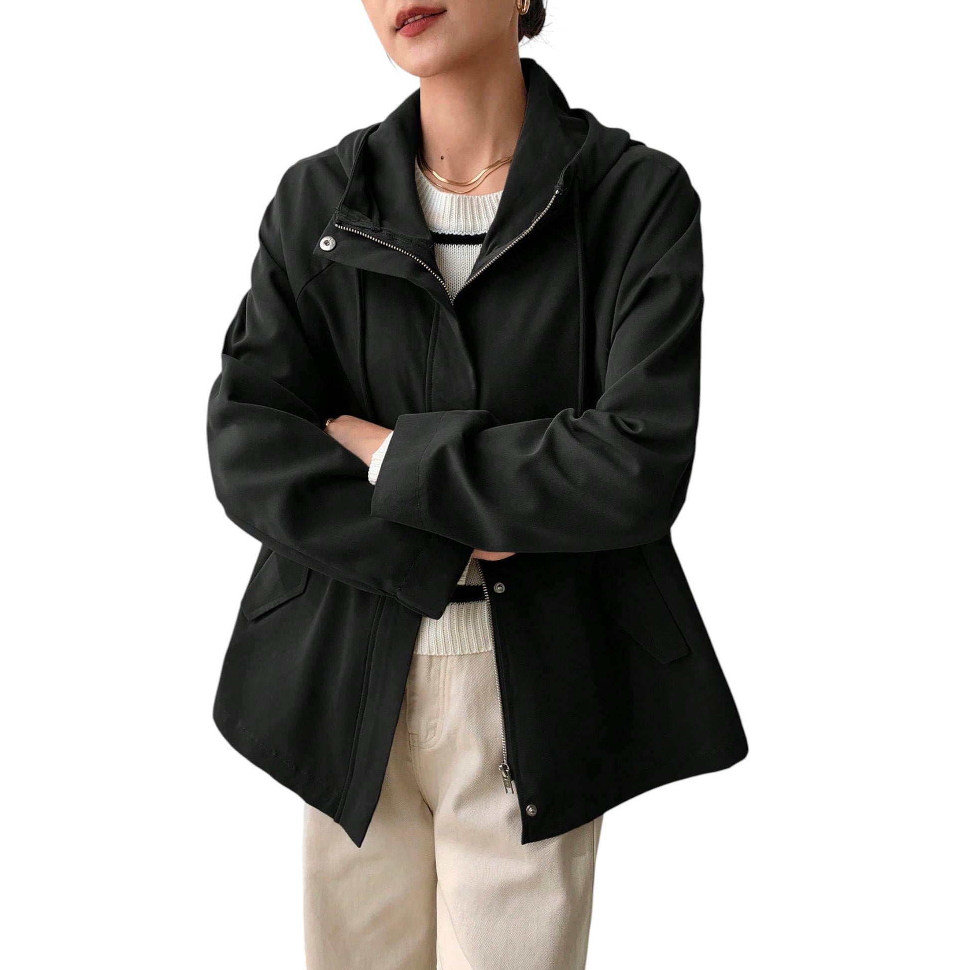 Címke nélküli, fekete, hosszú ujjú, kapucnis, cipzáros, zsebes kabát.