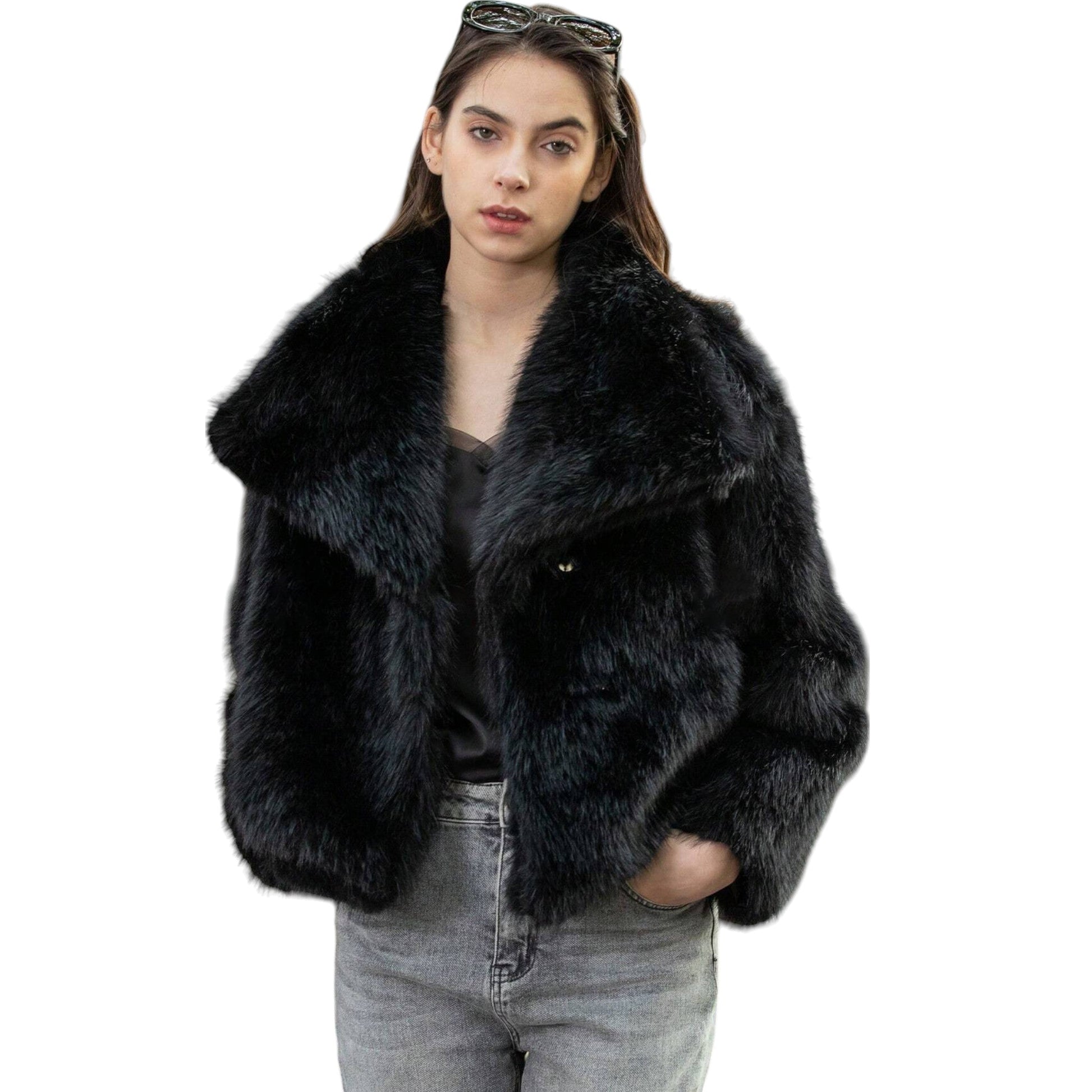 SHE fekete műszőrme kabát