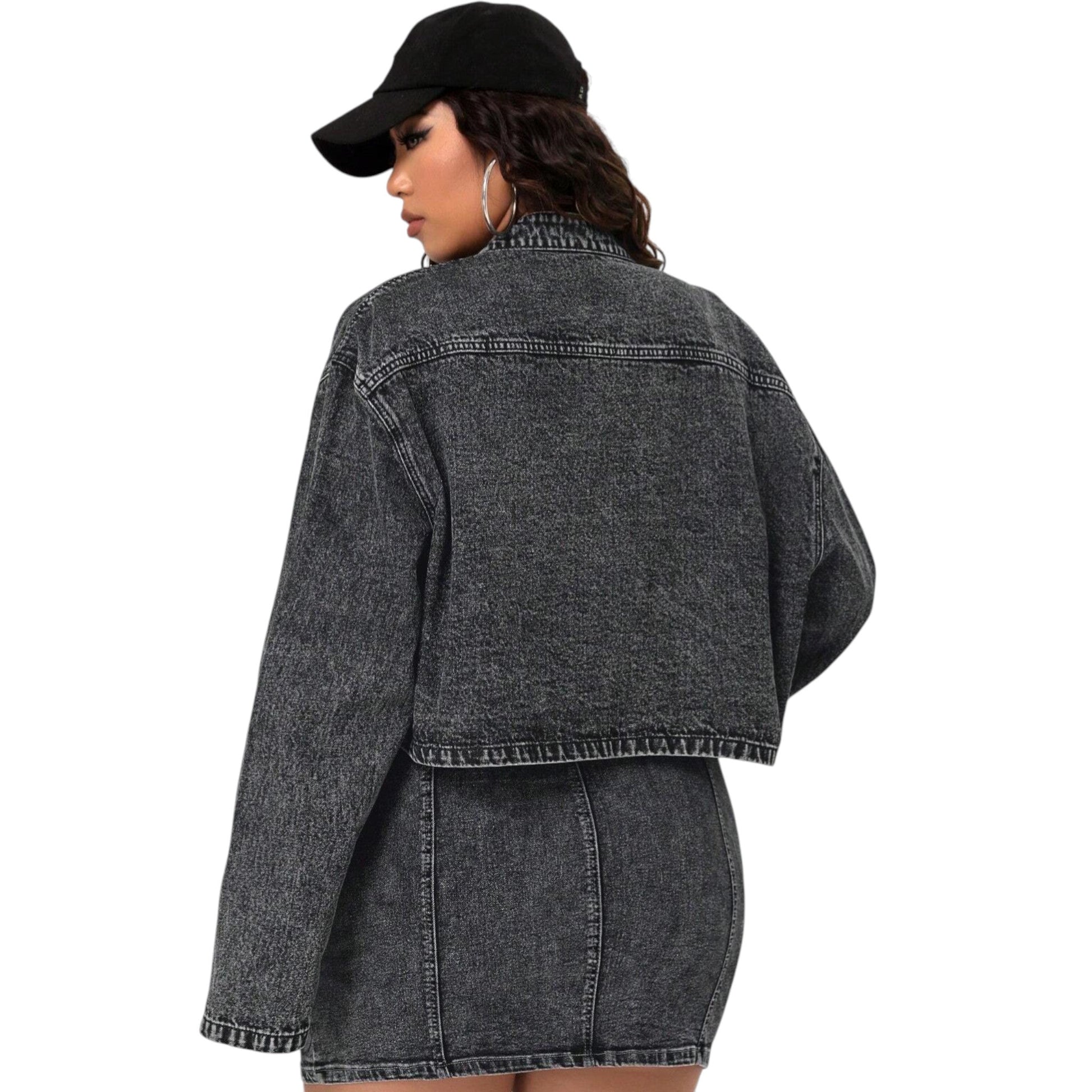 SHE feketre crop szaggatott farmer dzseki