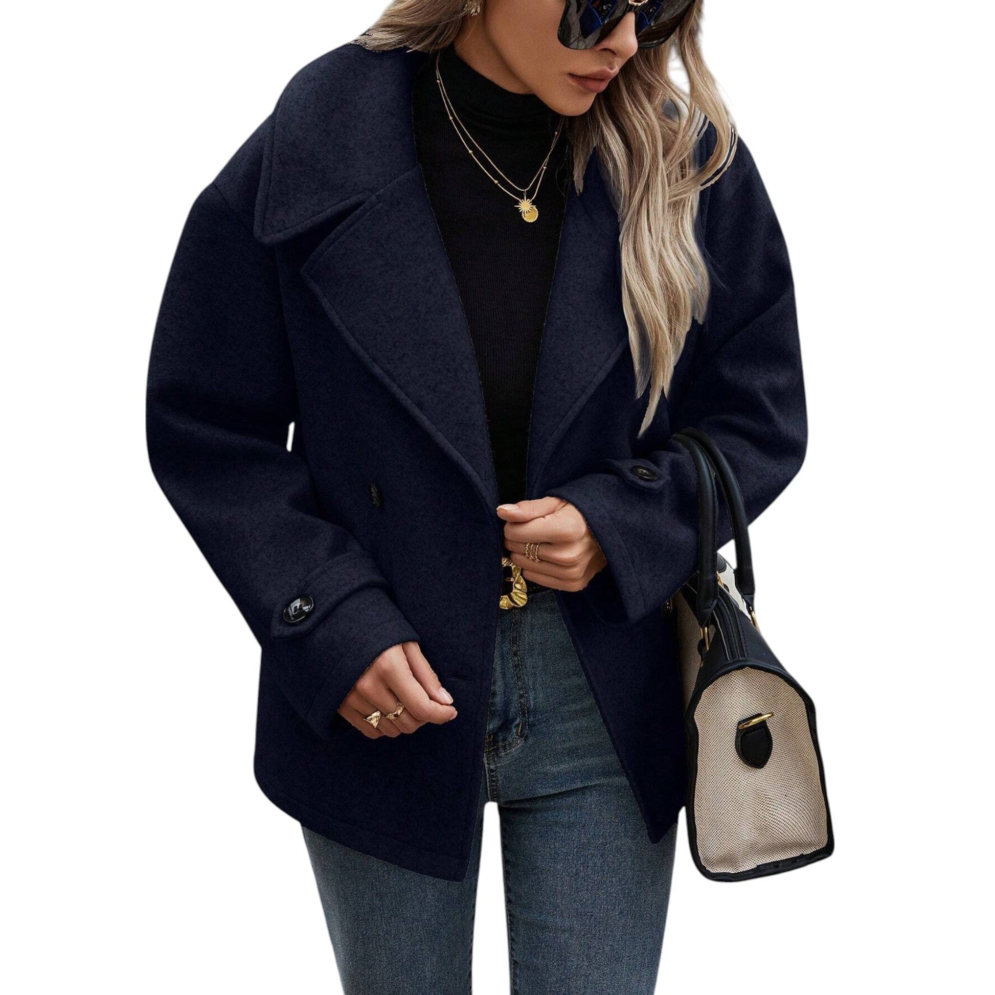 SHE sötétkék rövid duplasoros szövetkabát
