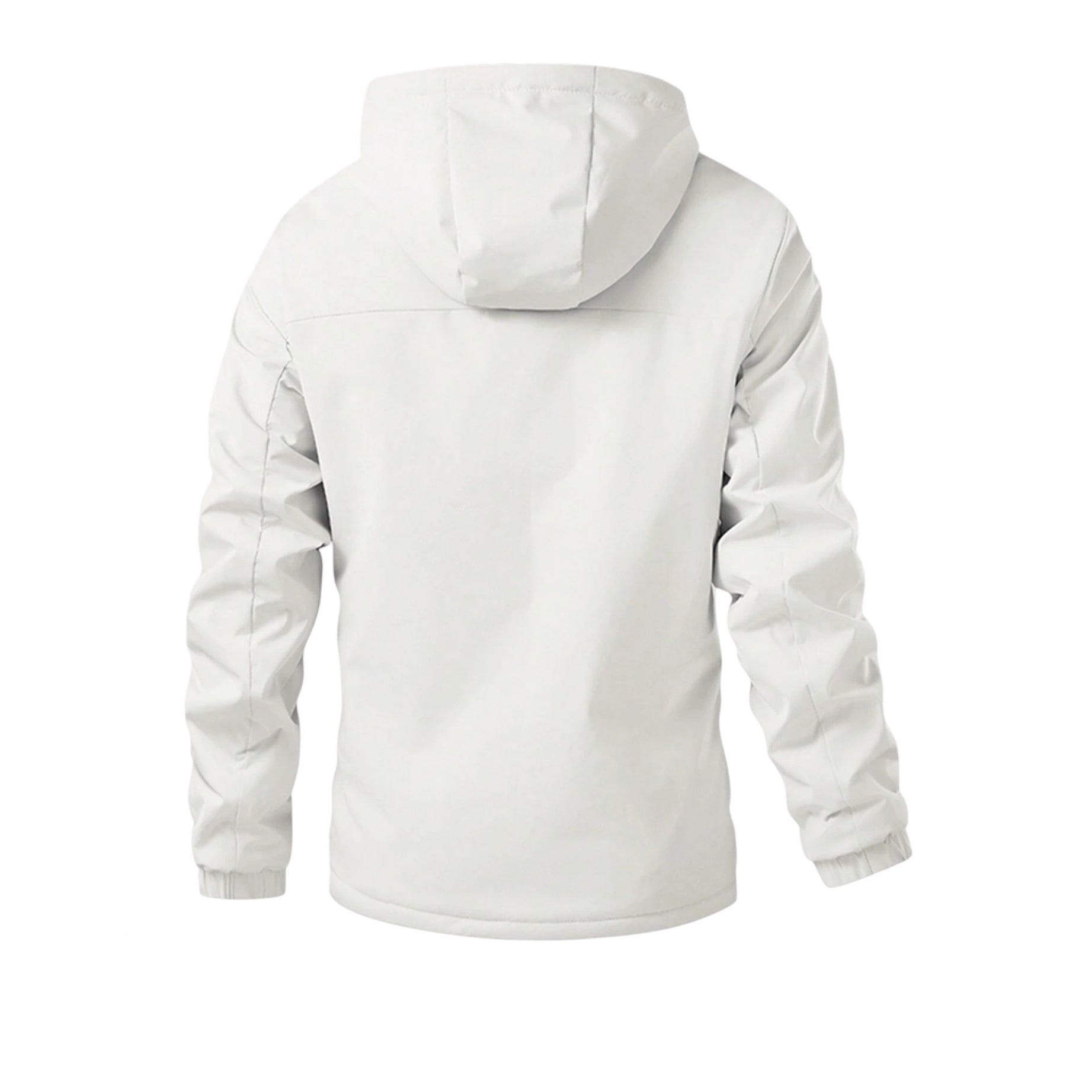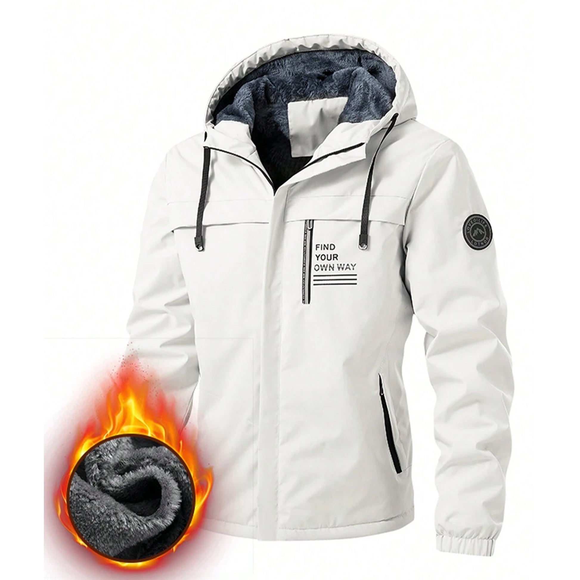 Címke nélküli, ekrü, kapucnis, bélelt, cipzáros, "FIND YOUR OWN WAY" felirattal a mellkason, zsebekkel, hímzett logóval.