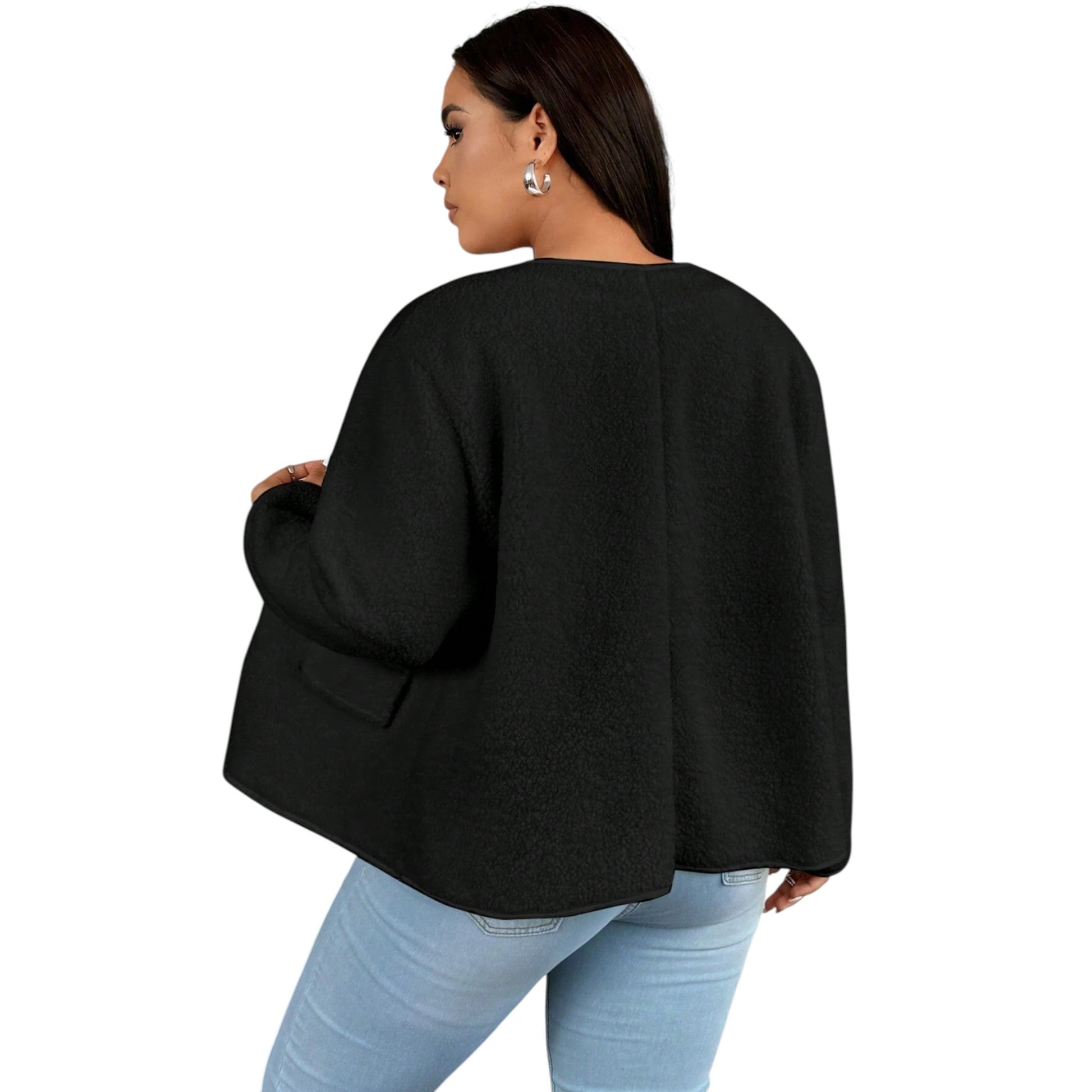 Címke nélküli, fekete, bouclé anyagú, kerek nyakú, gombos, két zsebbel.