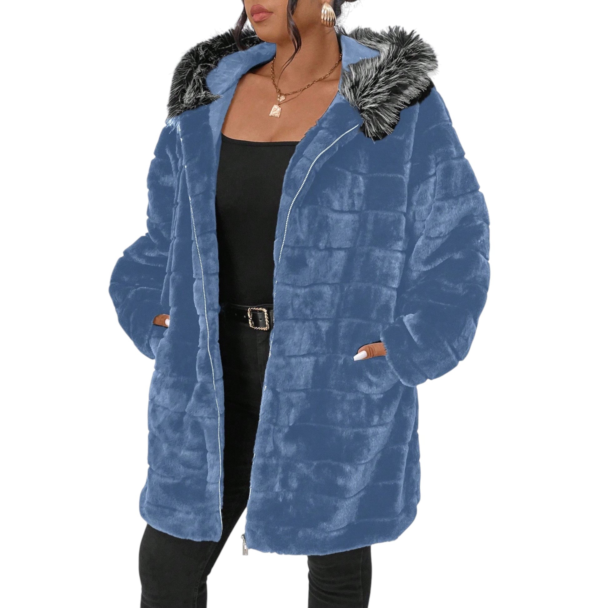 Címke nélküli, kék, műszőrme, kapucnis, hosszú ujjú, cipzáras, hosszú kabát.