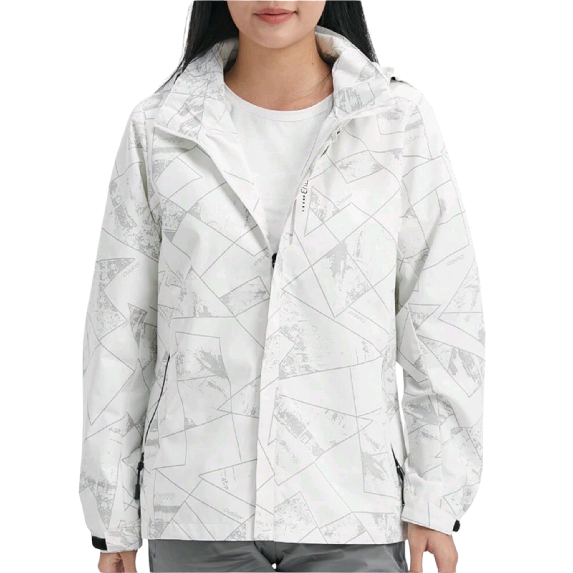 Címke nélküli, fehér, mintás, kapucnis, cipzáros, széldzseki