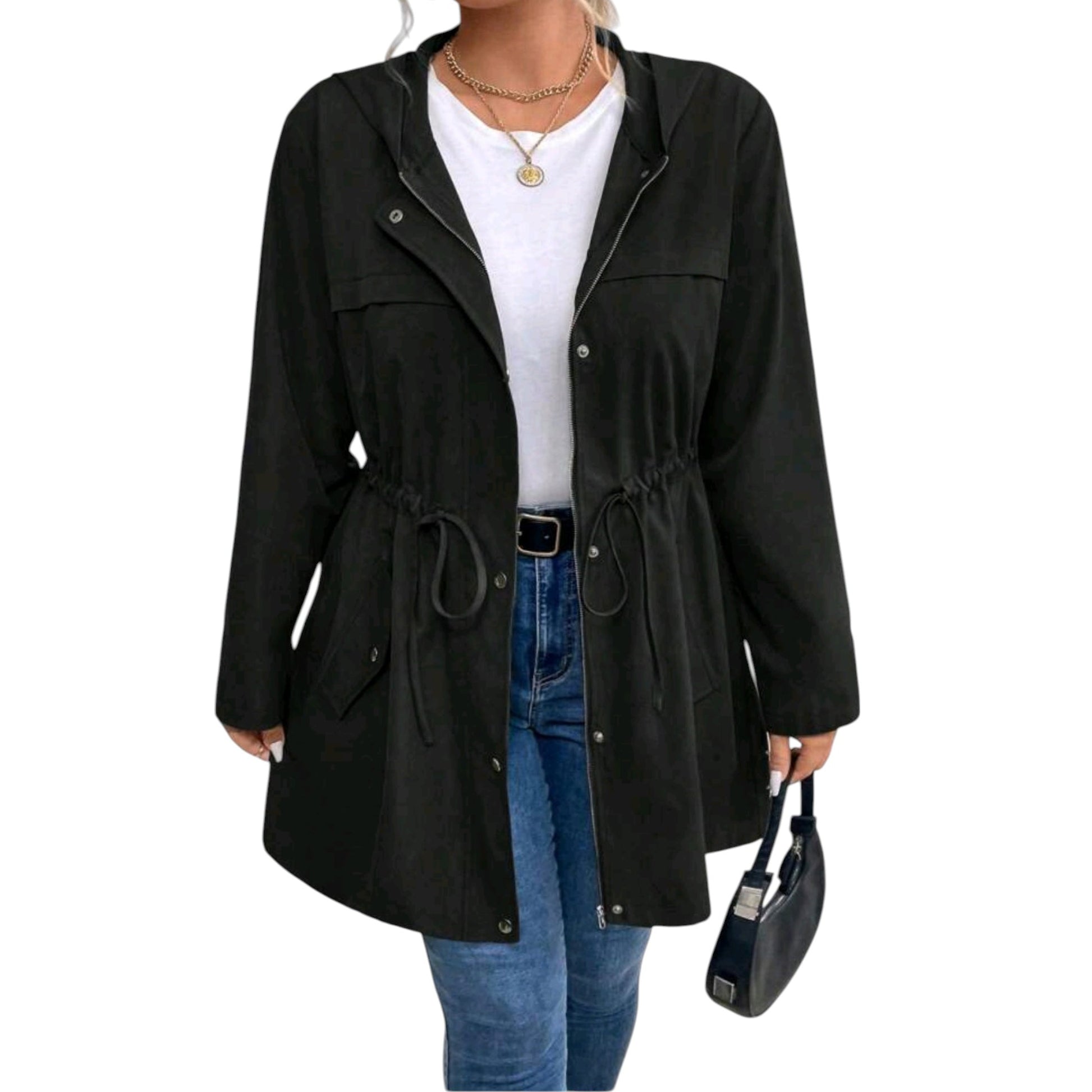 Címke nélküli, fekete, kapucnis, cipzáros, megkötős, zsebes