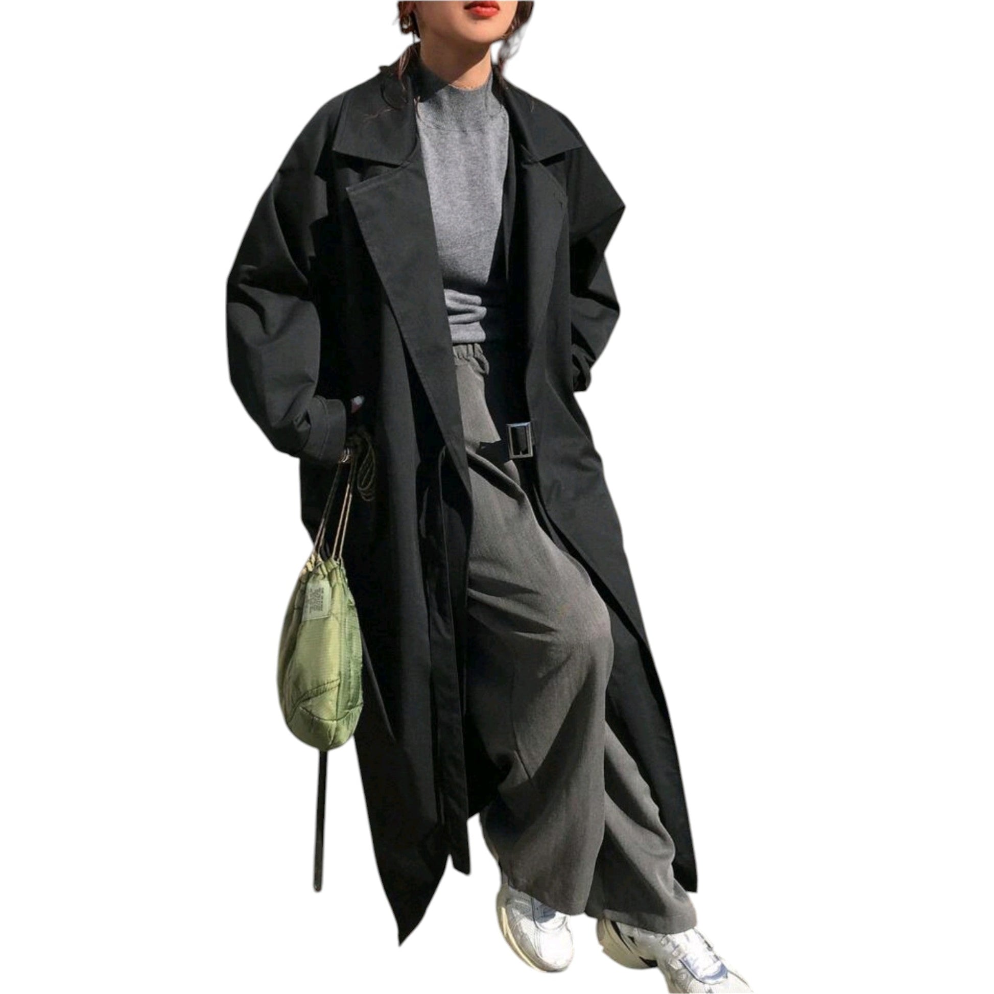 Címke nélküli, fekete, hosszú, oversized, galléros, zsebes