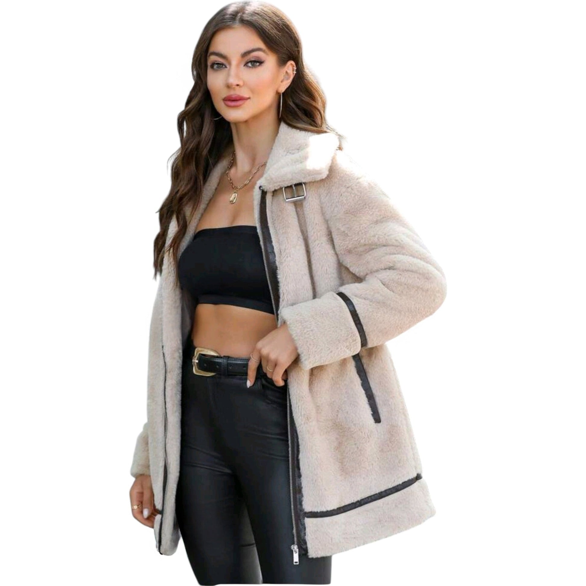 Címke nélküli, bézs, teddy, cipzáros, galléros, fekete szegéllyel