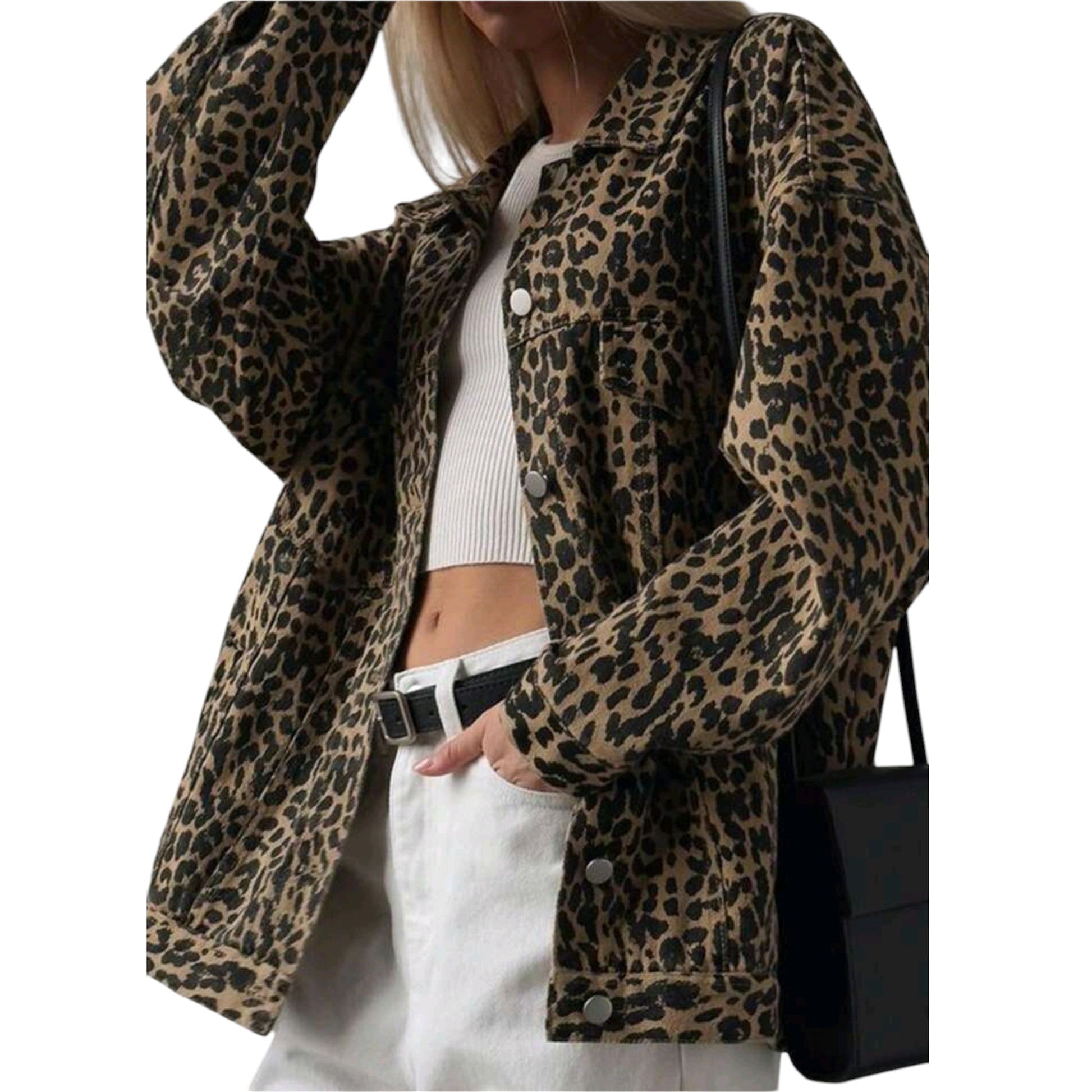 Címke nélküli, barna-fekete leopárd mintás shacket (ingkabát), gombolós, zsebekkel.
