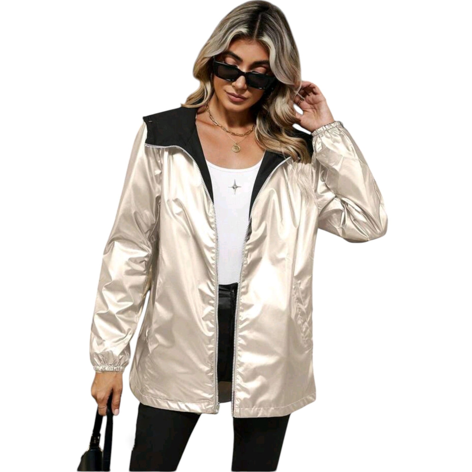 SHE bézs-fekete kifordítható kapucnis dzseki