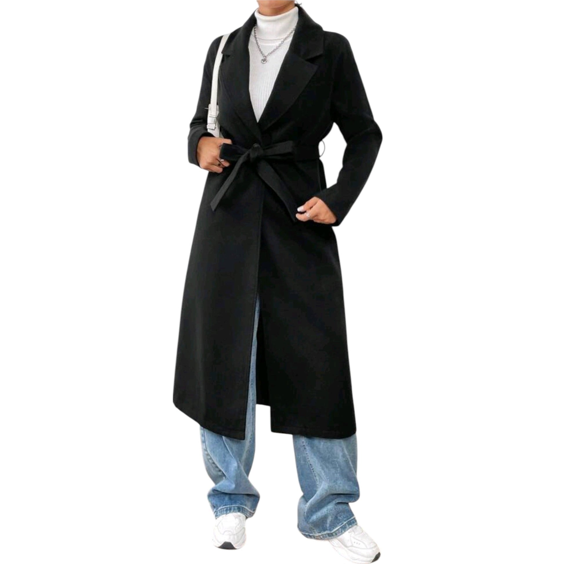 Címke nélküli, fekete, hosszú ujjú, galléros, derékban megkötős, hosszú.