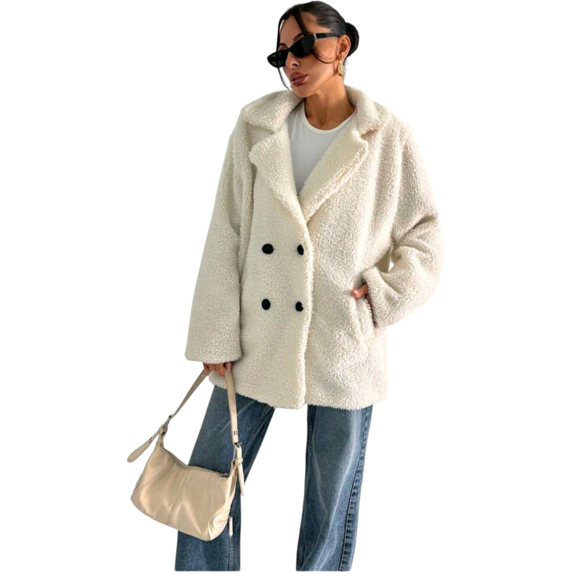 SHE törtfehér kétsoros bundás kabát