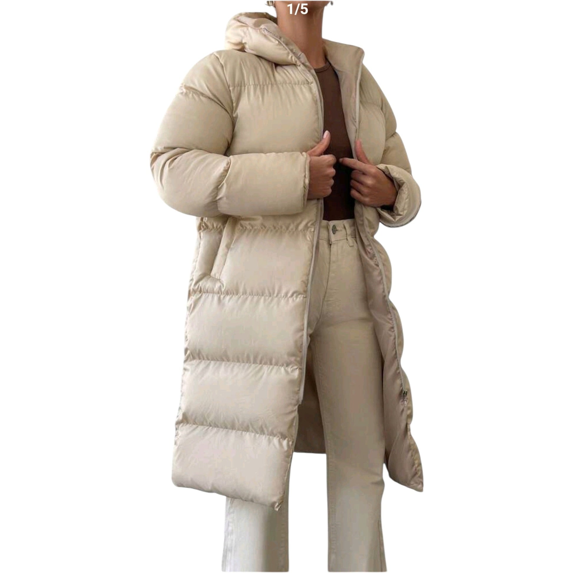 Címke nélküli, bézs, steppelt, hosszú ujjú, kapucnis, cipzáros, hosszított fazon.