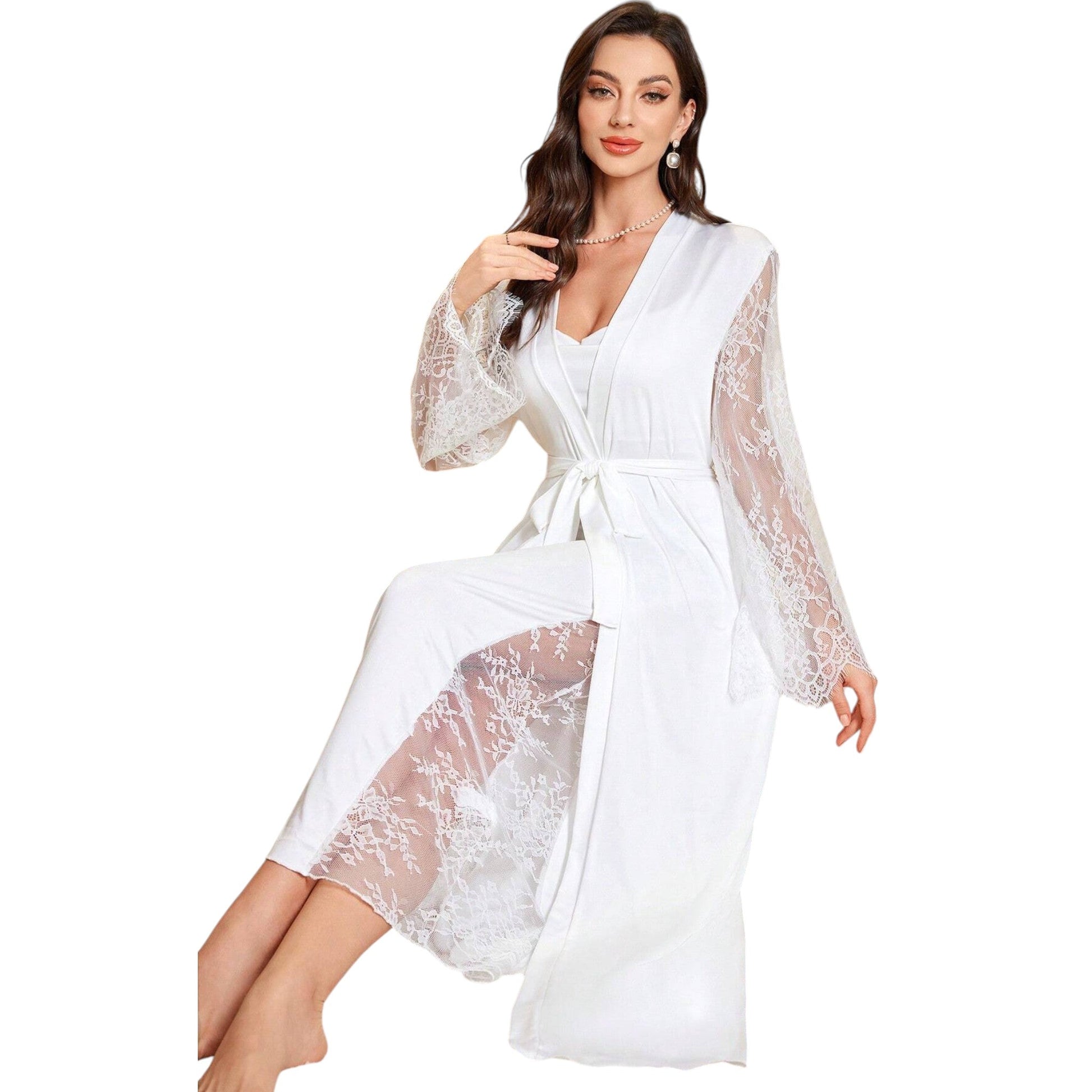 Címke nélküli, fehér, csipke betétes, hosszú hálóruha köntössel