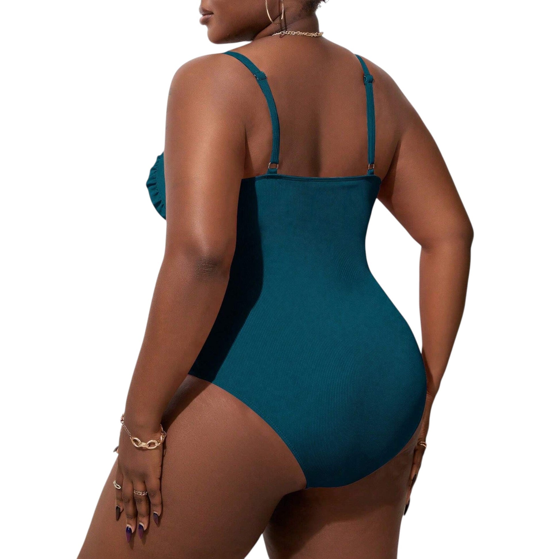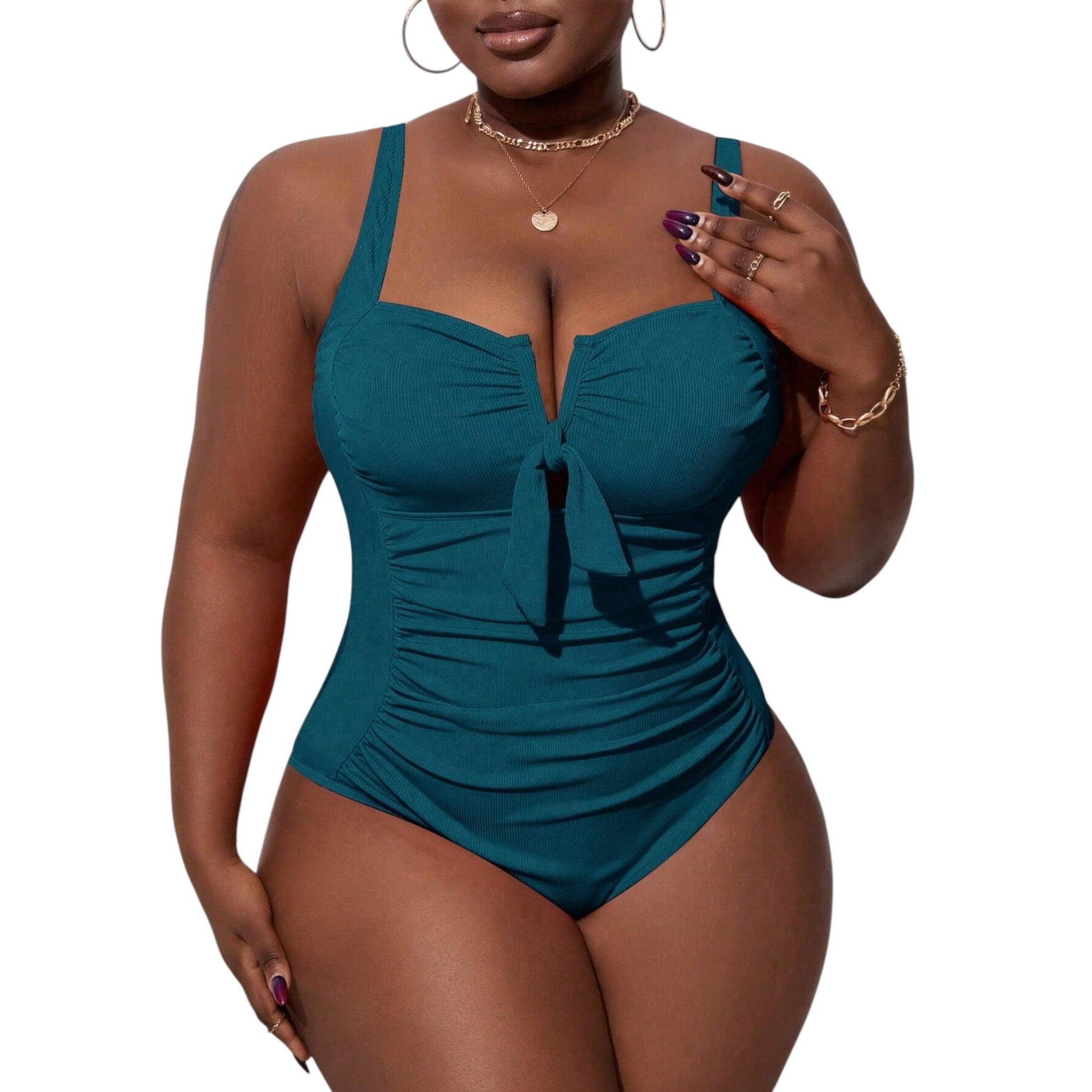 Címke nélküli, türkiz, ráncolt, széles pántos, elől megkötős, merevítős egyrészes fürdőruha.