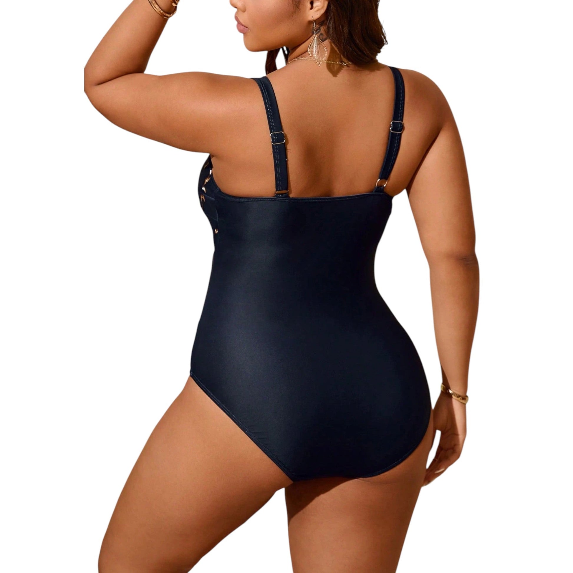 Címke nélküli, fekete, leopárd mintás betéttel, széles pántos, egyrészes fürdőruha.